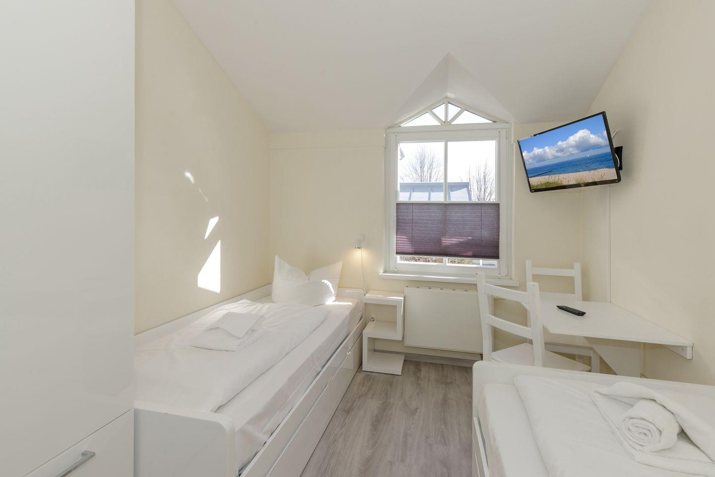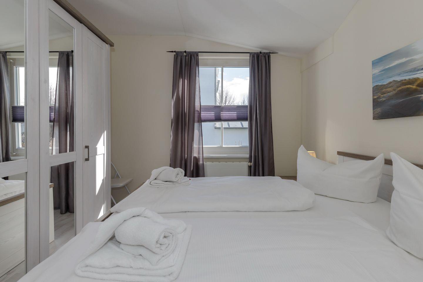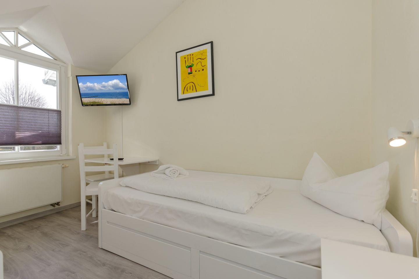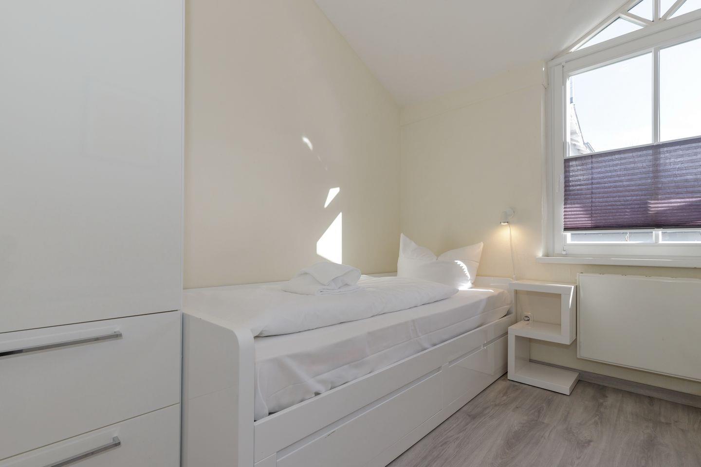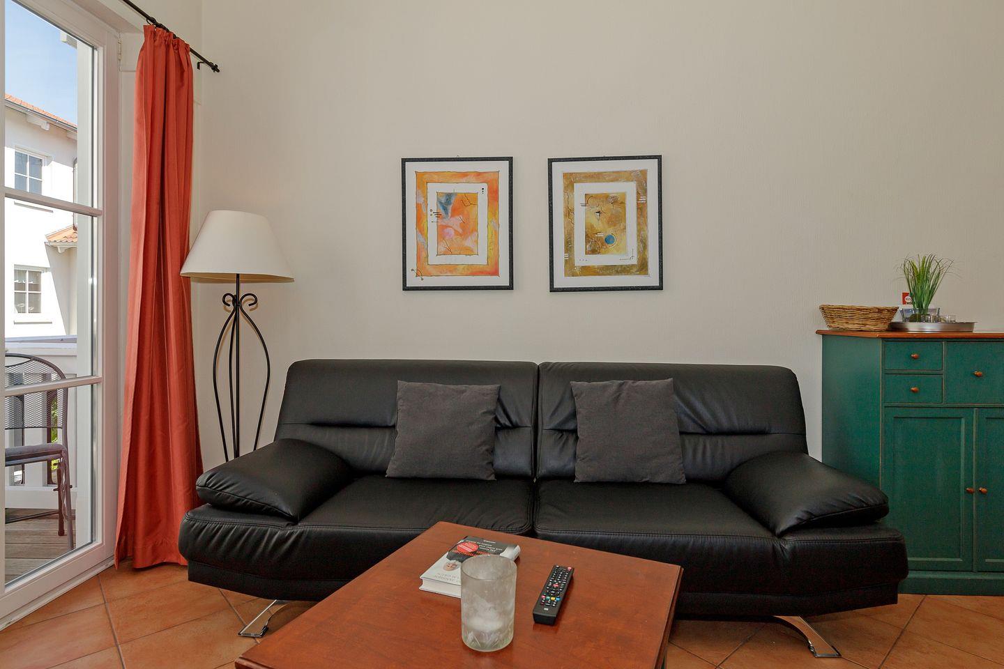 Im 1. Obergeschoss befindet sich die Ferienwohnung, auf der Westseite der Apartmentanlage „Strandstraße 16“, die nahe des Zentrums mit zahlreichen Restaurants und Einkaufsmöglichkeiten liegt – Strand und Seebrücke sind nur 800 Meter entfernt.