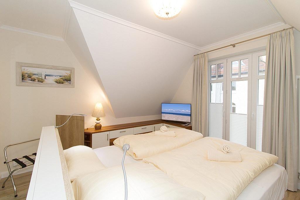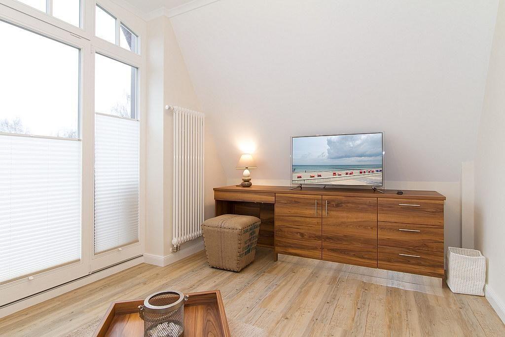 Zwei Balkone in Ost- bzw. Nord-Lage und der Meerblick versprechen einen erholsamen Urlaub an der Ostsee. Ein Kinderbett kann gegen Entgelt aufgestellt werden und auf Wunsch könnt ihr einen Hochstuhl hinzubuchen. Das Apartment verfügt über einen Safe.