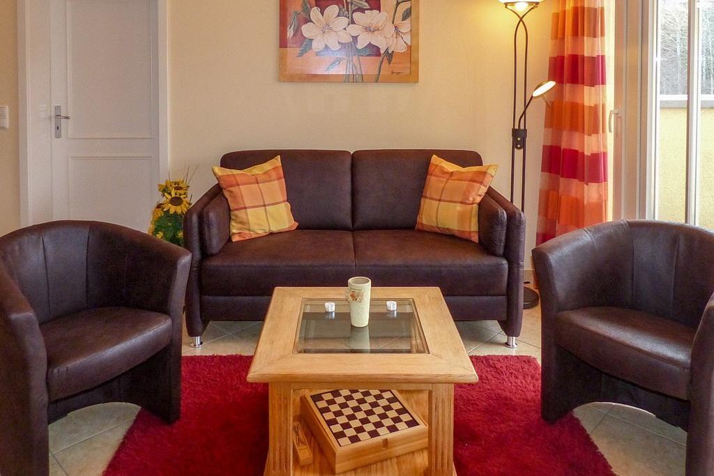 Familienfreundliche Ferienwohnungen an der Ostsee findet ihr im „Dünenschloss“ in Kühlungsborn: Das 3-Zimmer Apartment mit 52 qm eignet sich für 4 Personen und bietet vom überdachten Südbalkon aus einen idyllischen Blick zum Wald.