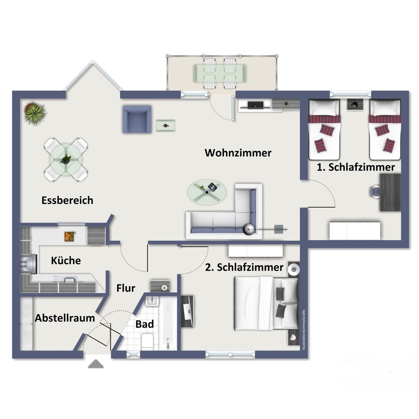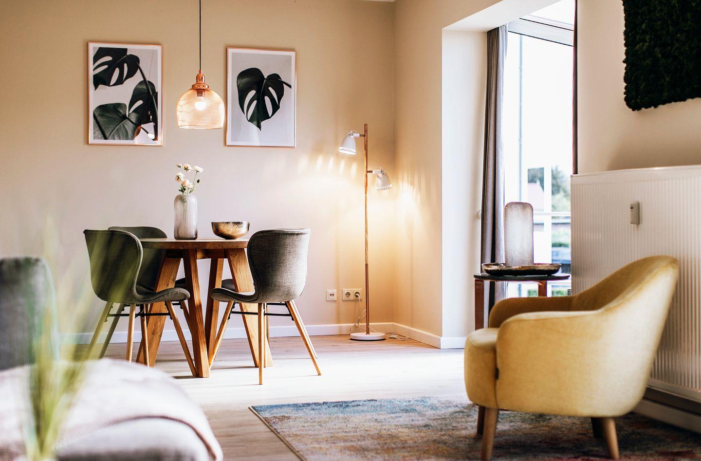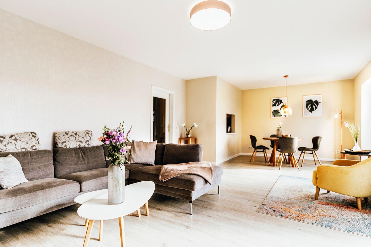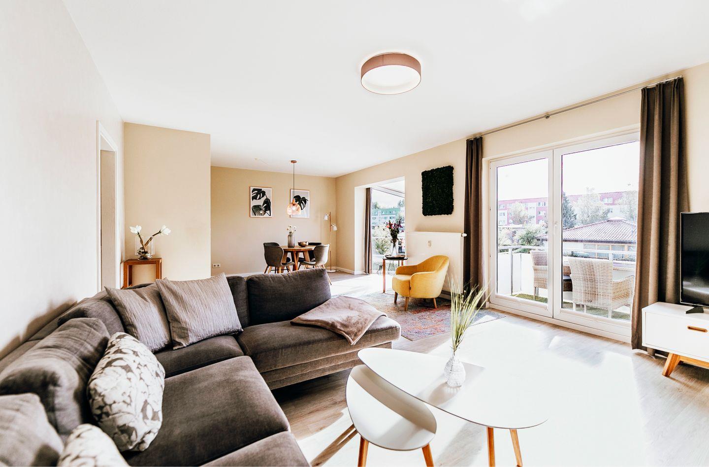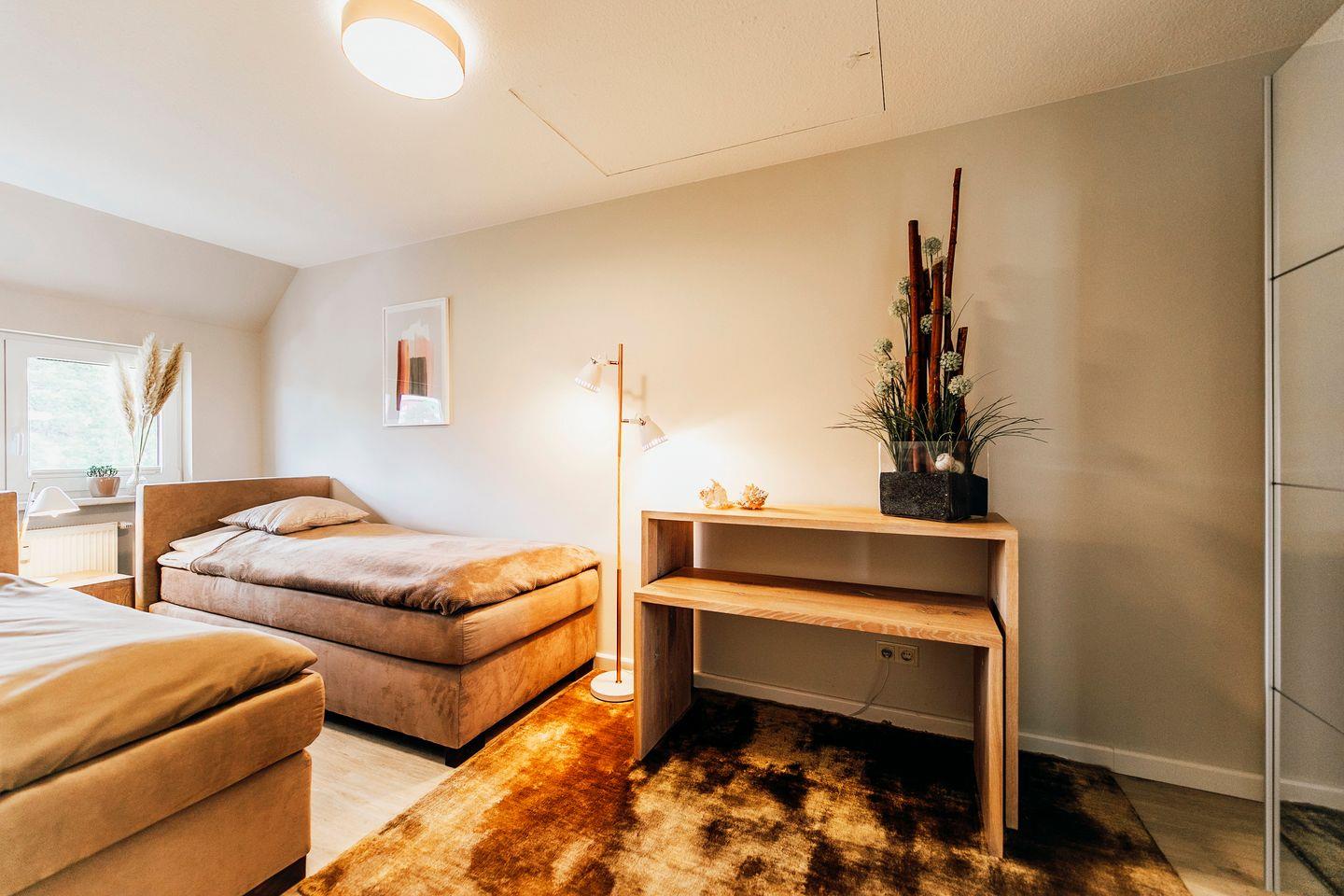 Die 3-Zimmer-Ferienwohnung 04 im 1. Obergeschoss der Anlage "Waldstraße 5b" bietet auf 70 m² Platz für bis zu 4 Personen.