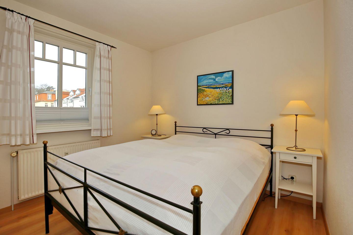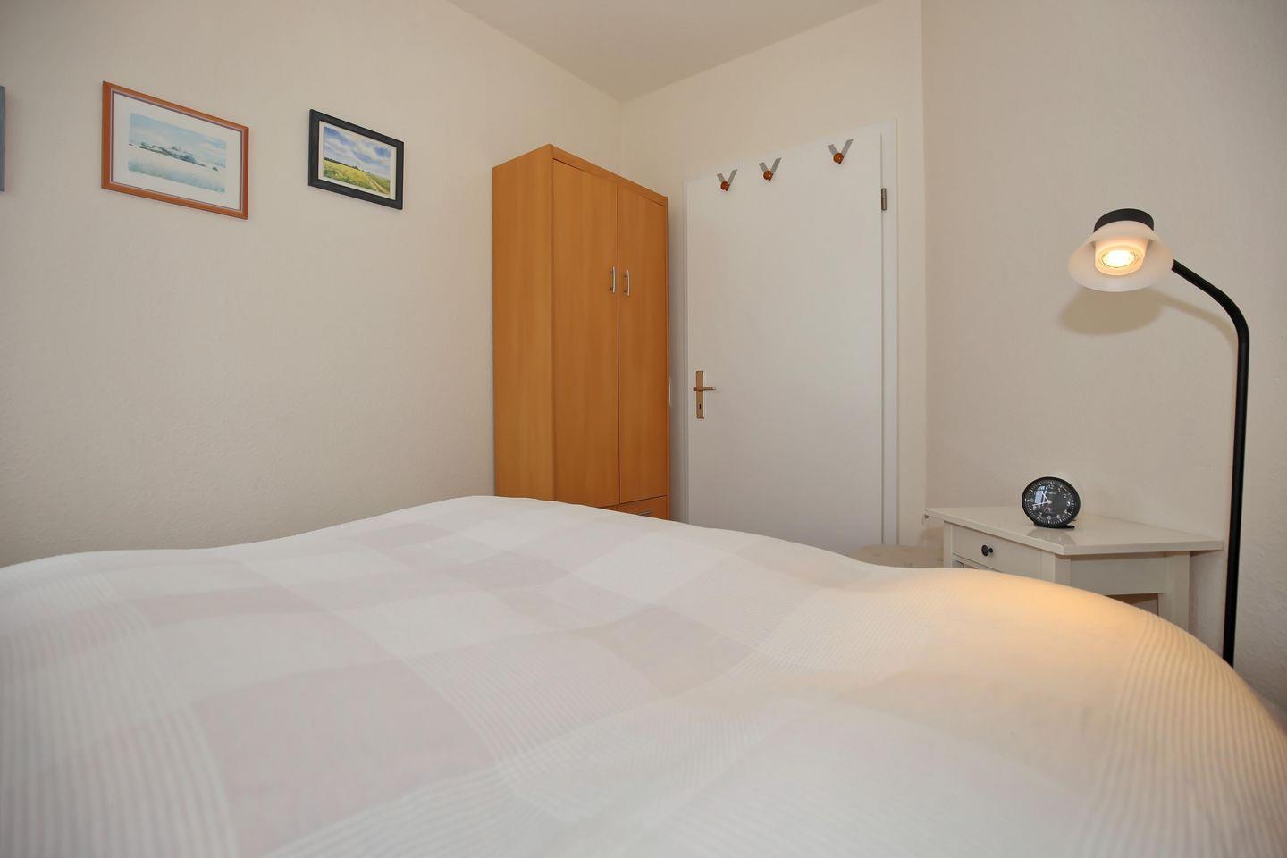 Ausruhen kannst du dich in einem der beiden Schlafzimmer der Ferienwohnung. Im ersten Schlafzimmer findest du ein Doppelbett (2 x 80 cm x 200 cm) und einen Kleiderschrank sowie einen