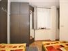 Im offenen Schlafzimmer erwarten dich zwei Einzelbetten (2 x 90 cm x 200 cm). Ein großzügiger Kleiderschrank bietet Stauraum in der Ferienwohnung für die Unterbringung deines Gepäcks. Zur Verdunkelung dienen Plissees.