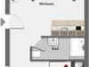 Das Bad ist mit einer Dusche, einem WC, einem Spiegel und einem Waschtisch ausgestattet. Als Bodenbelag sind Fliesen in der gesamten Wohnung gewählt worden.