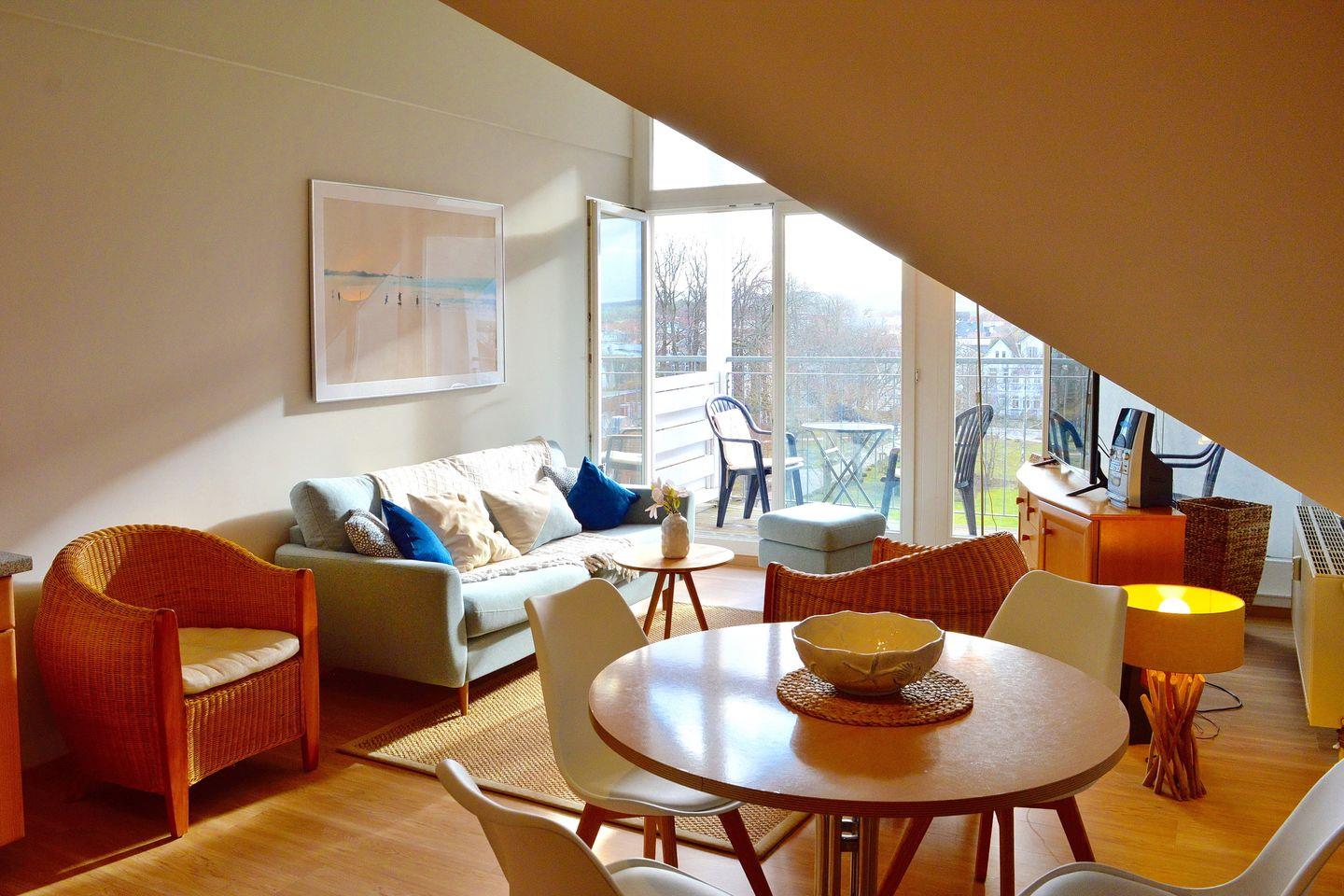 Das 60 m² große 3-Zimmer-Maisonette-Apartment ist für bis zu 4 Personen geeignet. Besonders hervorzuheben ist die direkte Strandlage der Apartmentanlage und die nach Süden gelegene Loggia. Hier könnt ihr den ganzen Tag das milde Ostseeklima und die Sonne genießen.