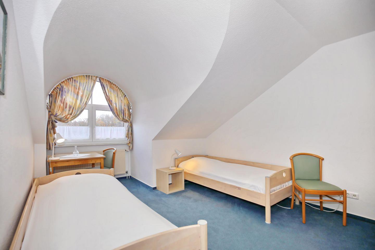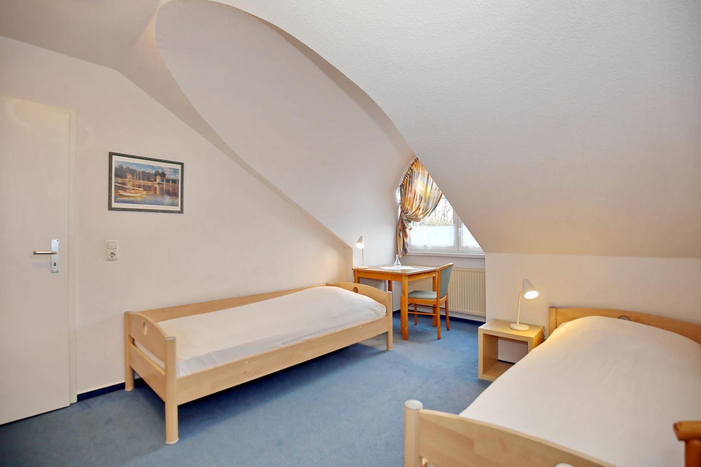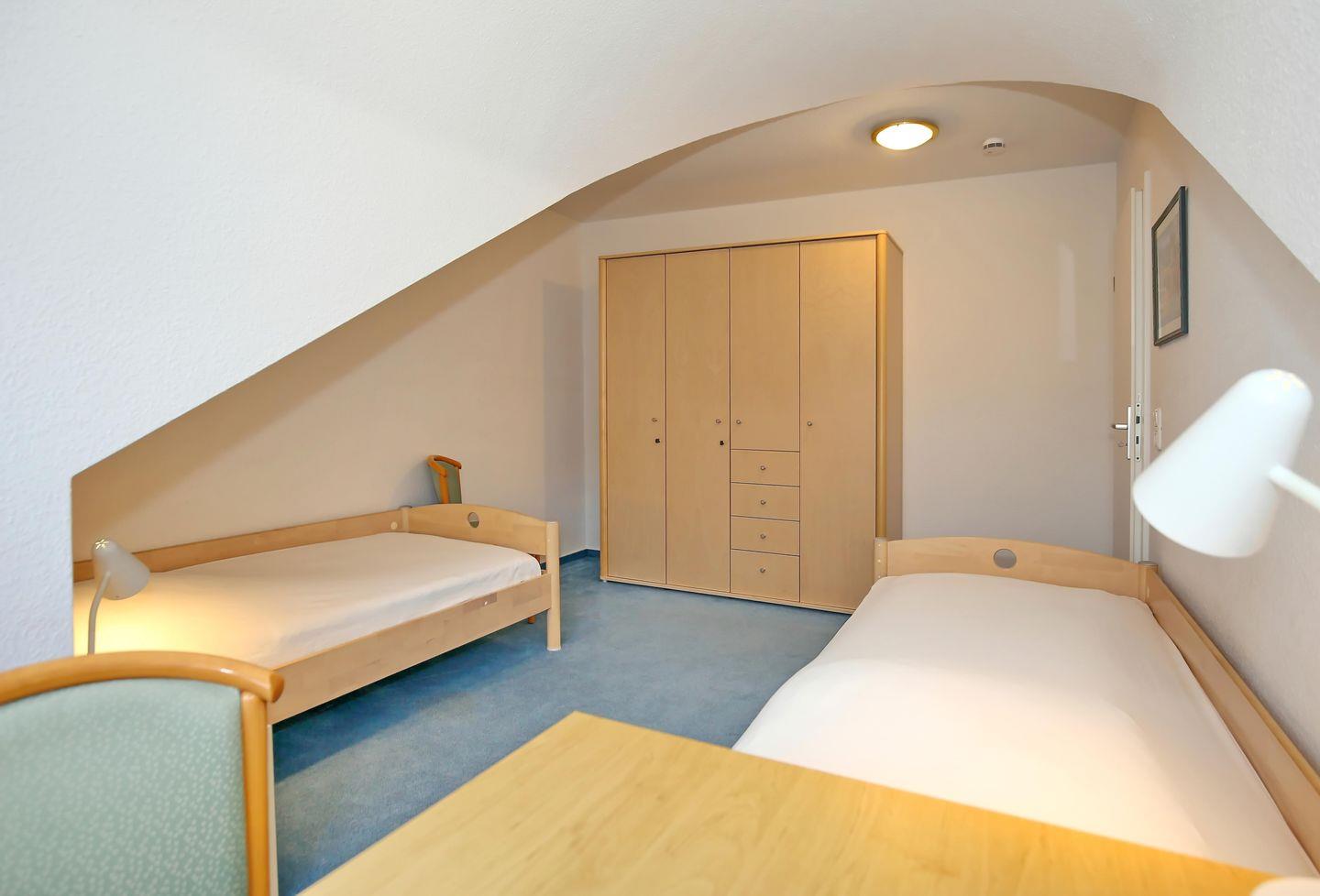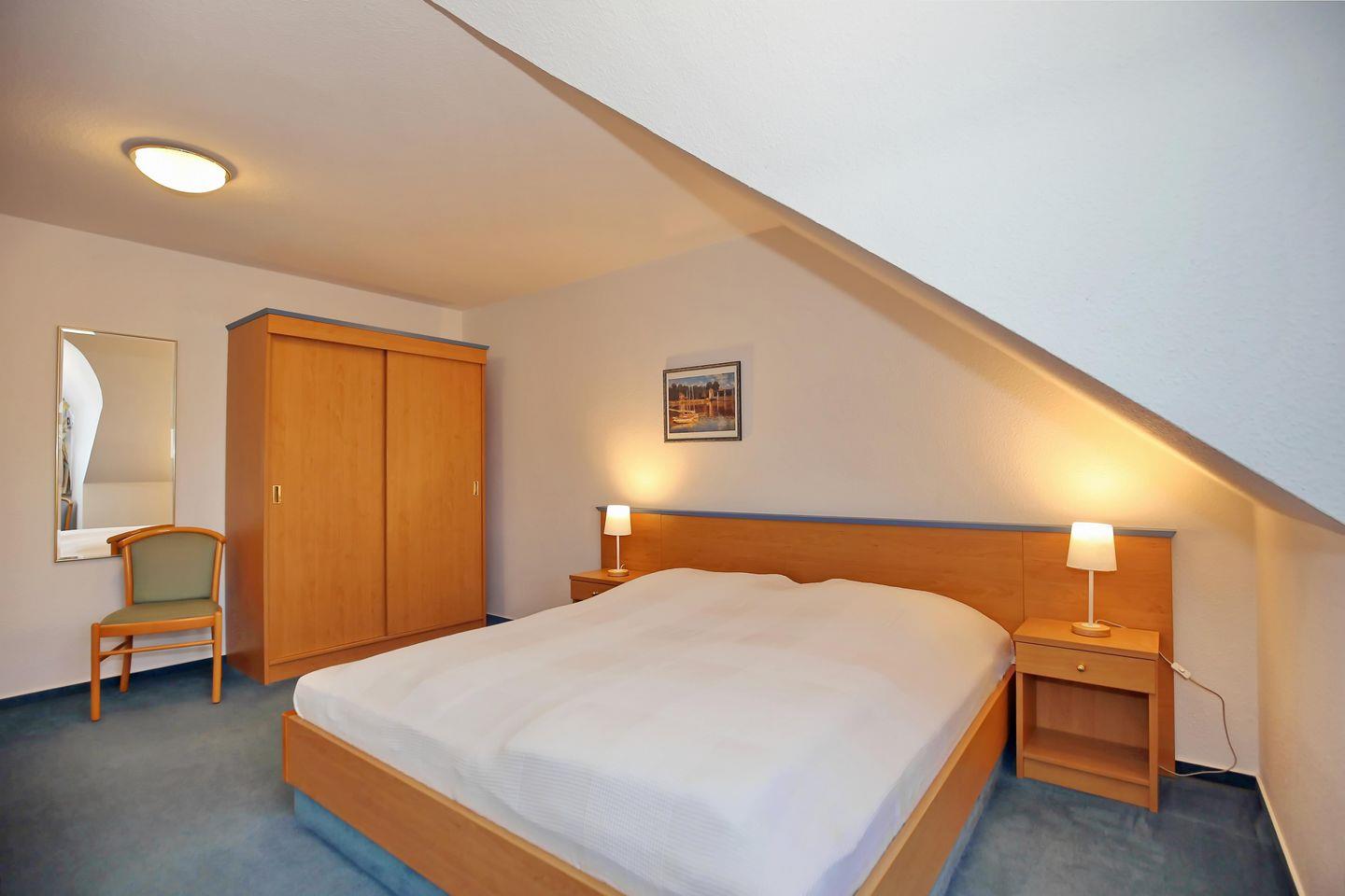 Im ersten großzügigen Schlafzimmer befindet sich ein Doppelbett mit zwei Matratzen (90 x 200 cm). Die Nachtschränke und der großzügige Kleiderschrank bieten dir ausreichend Stauraum für deine Urlaubsgarderobe. Im zweiten Schlafzimmer laden dich 2 Einzelbetten (je 90 x 200 cm) zur Nachtruhe ein. Auch hier bietet ein Kleiderschrank genügend Platz für dein Gepäck. Vorhänge dienen dir in beiden Schlafräumen als Sichtschutz.