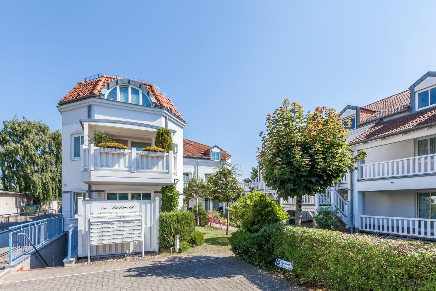 Die Ferienwohnung Nr. 08 in der Wohnanlage "Am Stadtwald" ist eine 2-Zimmer-Wohnung und befindet sich im Erdgeschoss. In der Ferienanlage befindet sich eine hauseigene Sauna, Waschmaschine und -Wäschetrockner gegen Gebühr (Münzautomaten) vorhanden.
