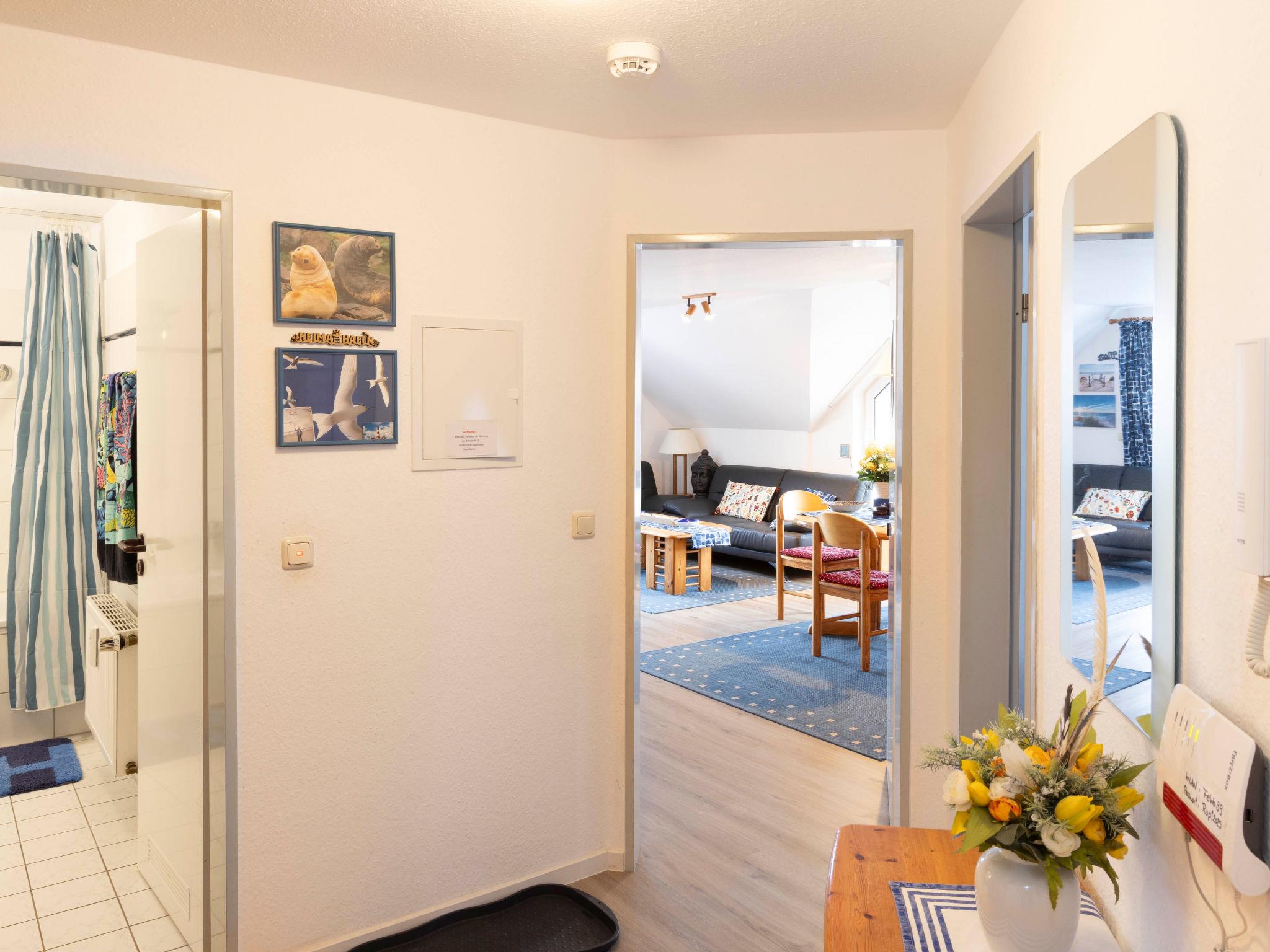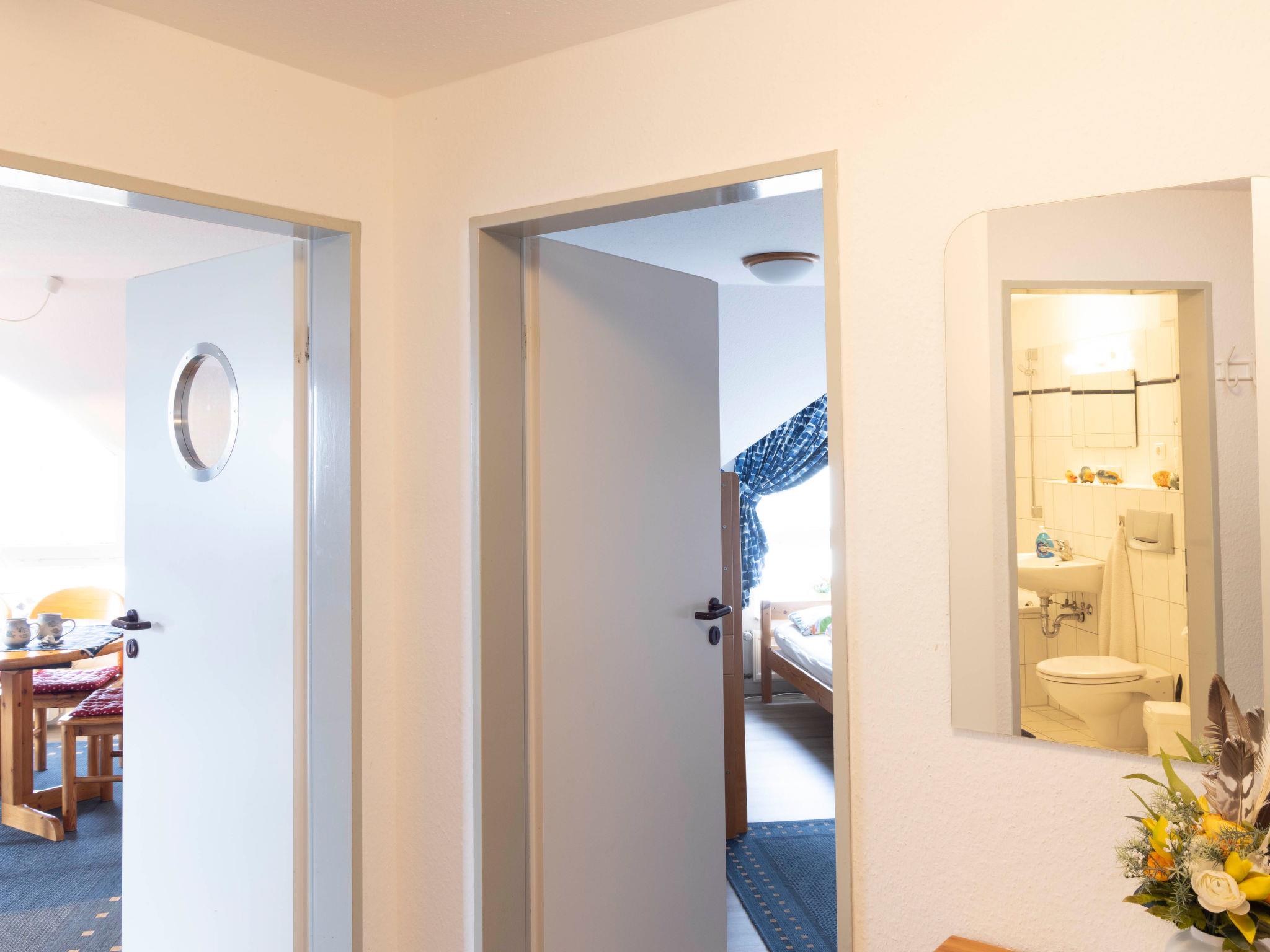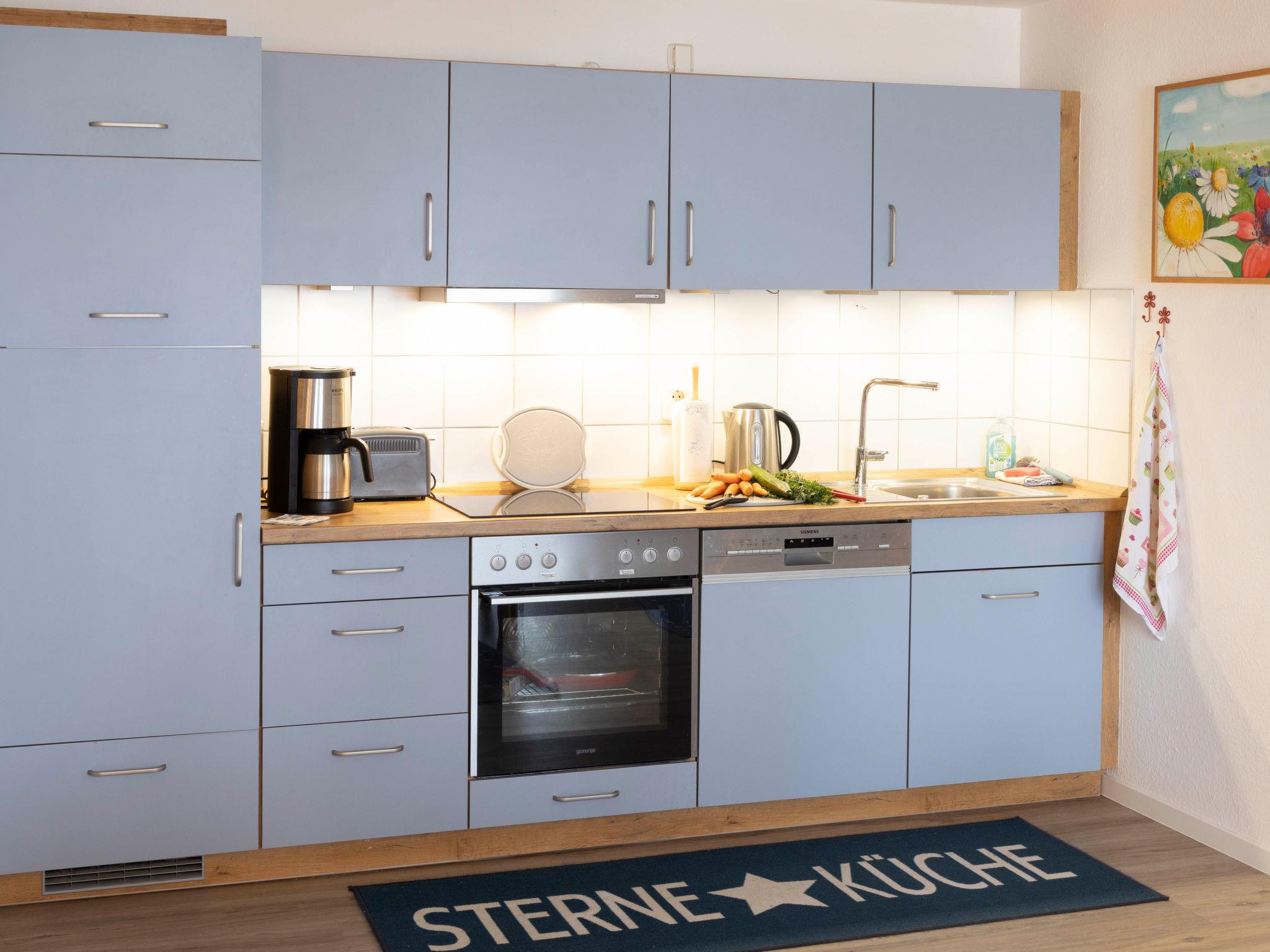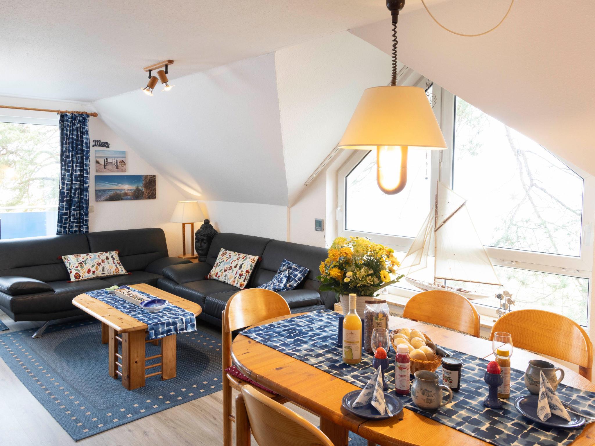 "Blaumuschel (LUB101)", 3-room apartment 70 m2 on 2nd floor. Bright, cosy furnishings: living room with sloping ceilings with dining table, satellite TV and radio. Exit to the balcony. 1 room with 1 double bed. Exit to the balcony. 1 room with sloping ceilings with 2 beds. Open kitchen (oven, dishwasher, 4 ceramic glass hob hotplates, toaster, microwave, electric coffee machine). Bath/WC. Balcony, south facing position and west facing position. Balcony furniture. Beautiful view of the sea. Facilities: children's high chair, baby cot. Internet (WiFi, free). Please note: non-smokers only. Smoke alarm.