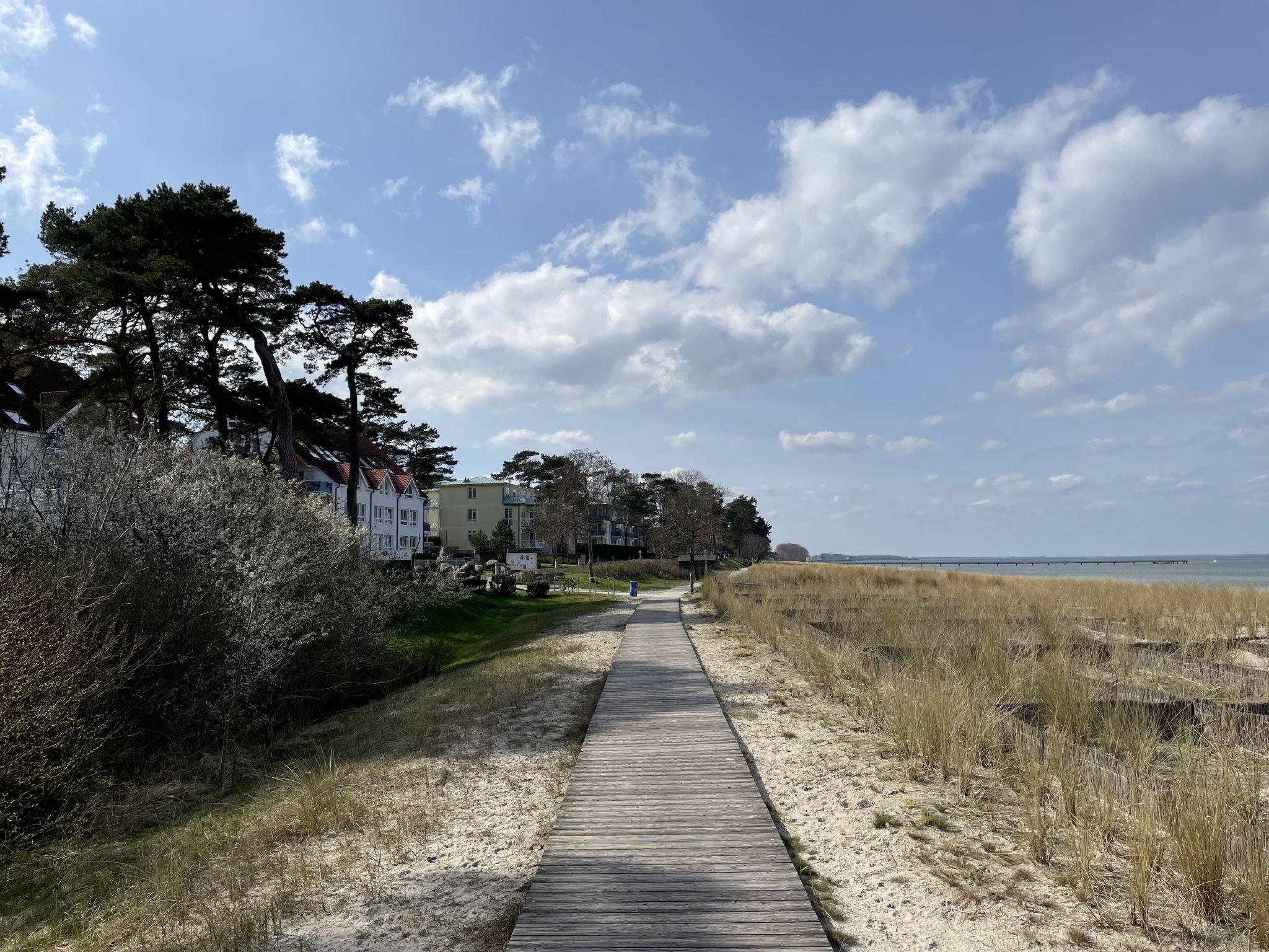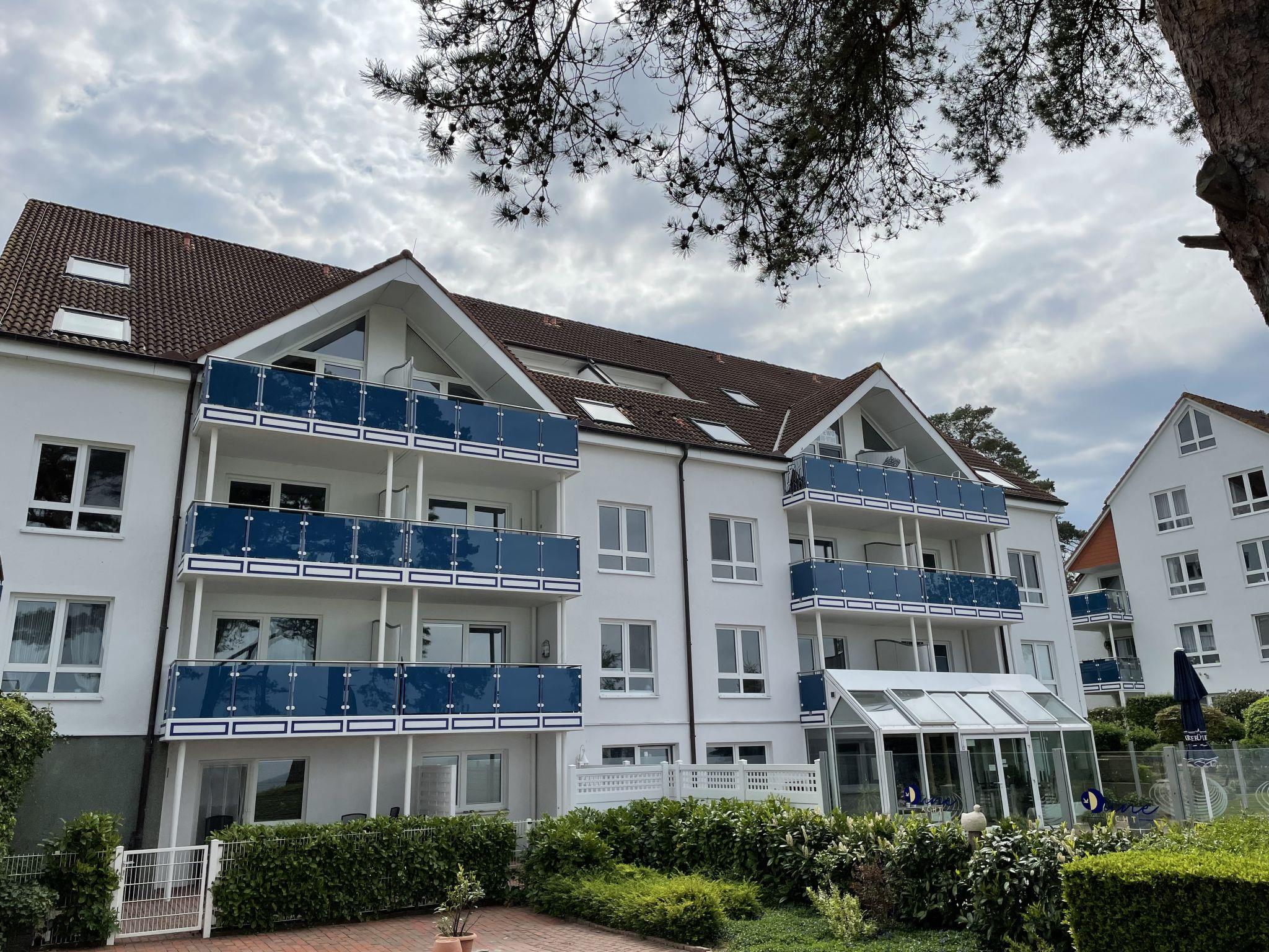Resort "Blaumuschel". 3 houses in the residence. 30 apartments in the residence. 1 km from the centre of Lubmin, on the outskirts, 12 km from the centre of Greifswald, 50 km from the centre of Stralsund, 50 m from the sea, 30 m from the beach, direct access to the beach. In the house: reception, restaurant, storage room for bicycles, central heating system. Parking (limited number of spaces). Supermarket 1 km, bus stop "Lubmin Seebad" 1.2 km, sandy beach 30 m. All houses/apartments are individually designed/furnished. Parking area for bicycles near holiday home available.