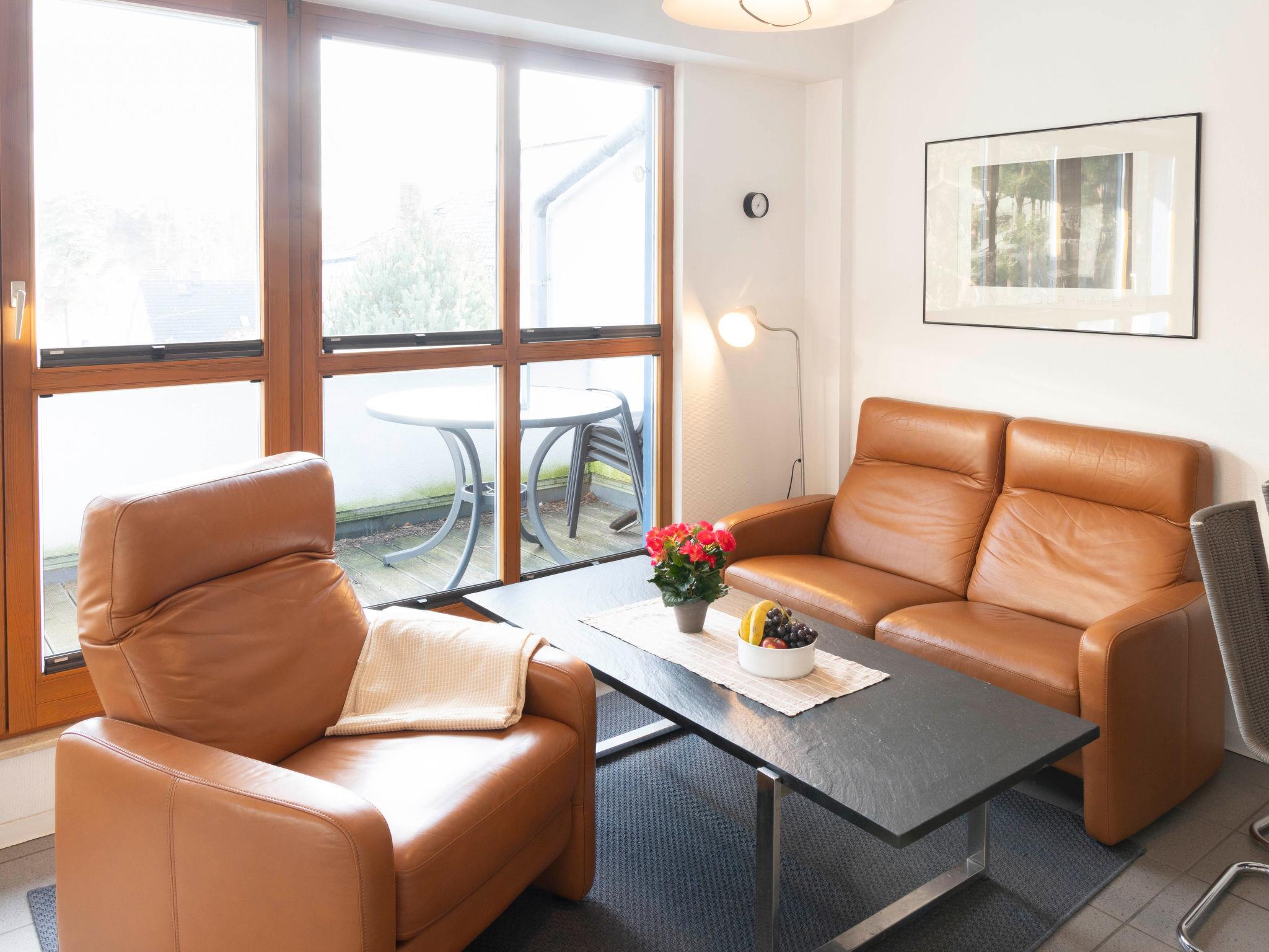 "Strandvilla (LUB111)", 3-room apartment 75 m2 on 2nd floor. Bright, modern and cosy furnishings: living room with dining table, cable TV, radio and CD-player. Exit to the balcony. 1 room with 1 french bed (160 cm, length 200 cm), cable TV. Exit to the balcony. 1 room with 1 french bed (140 cm, length 200 cm). Exit to the balcony. Open kitchen (oven, dishwasher, 4 ceramic glass hob hotplates, toaster, kettle, microwave, freezer, electric coffee machine). Shower/WC. 2 balconies 8 m2. Balcony furniture, barbecue. Side view of the sea. Facilities: washing machine, children's high chair, baby cot. Internet (WiFi, free). Parking. Please note: non-smokers only. Smoke alarm.