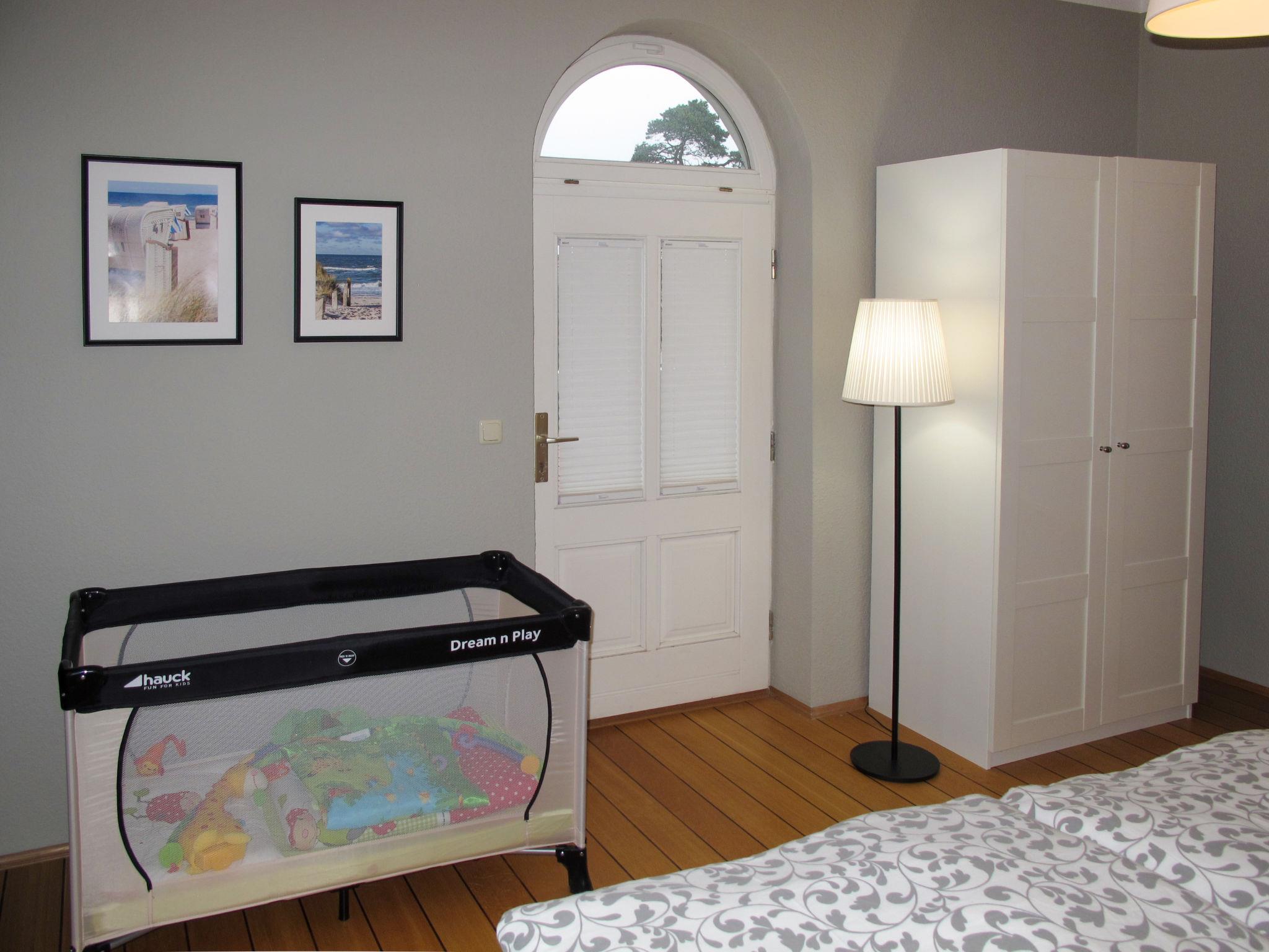 4-room apartment 85 m2 on 1st floor. Modern and tasteful furnishings: living room with satellite TV (flat screen), hi-fi system. Dining room. Exit to the balcony. 1 double bedroom. Exit to the balcony. 1 double bedroom with satellite TV (flat screen). Kitchen (oven, dishwasher, 4 ceramic glass hob hotplates, toaster, kettle, microwave, freezer, electric coffee machine) with dining table. Shower/WC. Underfloor heating. View of the sea. Facilities: baby cot. Internet (WiFi). Parking (1 car) at the house. Please note: non-smokers only. Smoke alarm, fire extinguisher.
