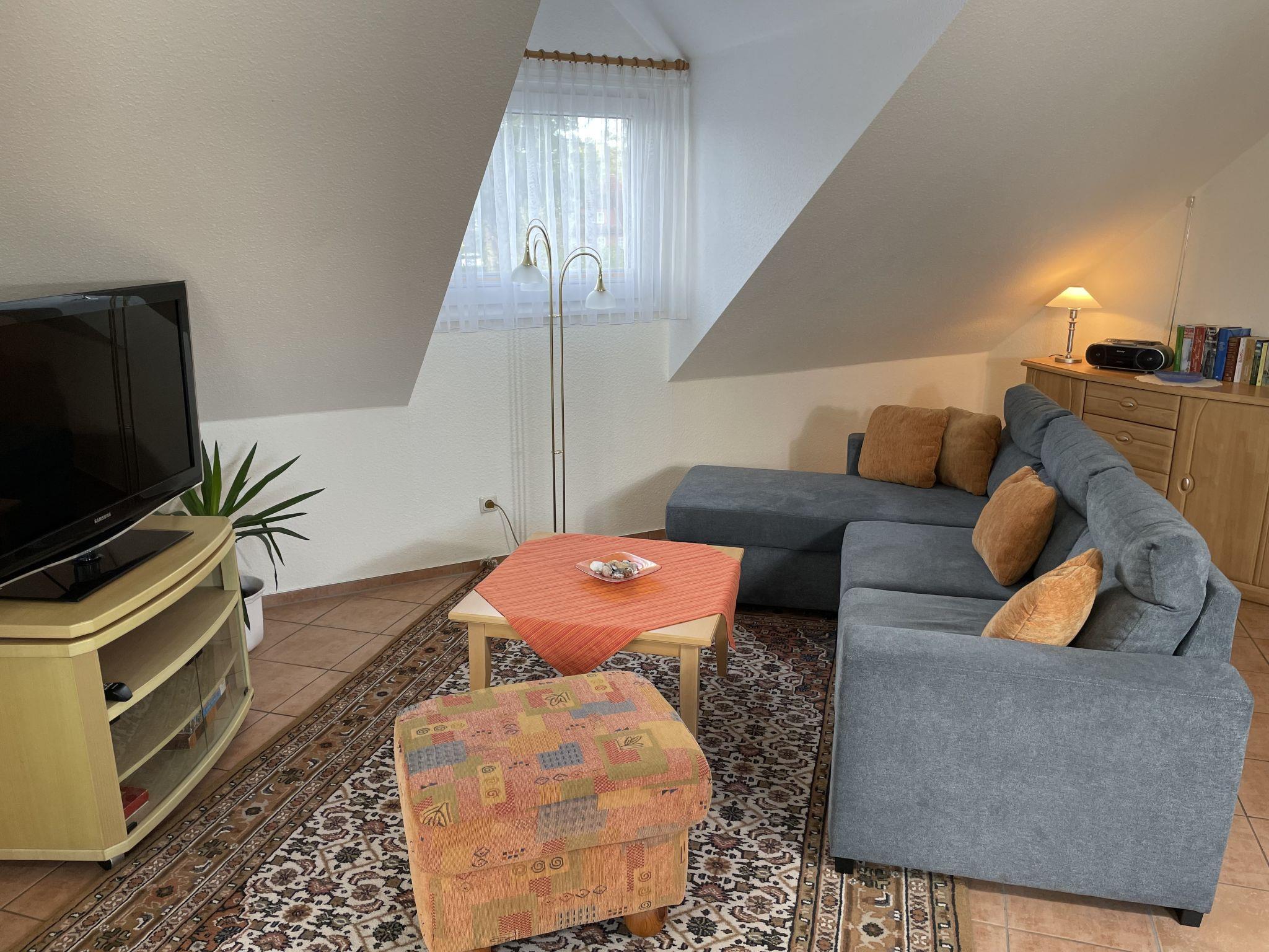 Modern 2-family house "Lemke". 300 m from the centre of Prerow, in a quiet position in the residential district, 750 m from the sea, 750 m from the beach. For shared use: garden with lawn. In the house: central heating system. Parking at the house. Shop, supermarket 250 m, restaurant 150 m, bus stop 200 m, railway station "Ribnitz" 38 km, indoor swimming pool 9 km. Tennis 800 m. Please note: the owner lives in the same residence.