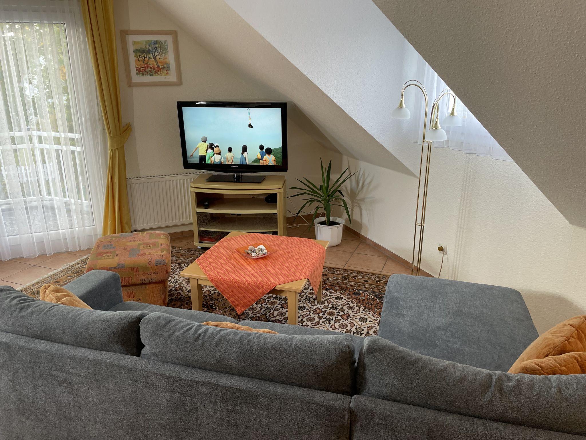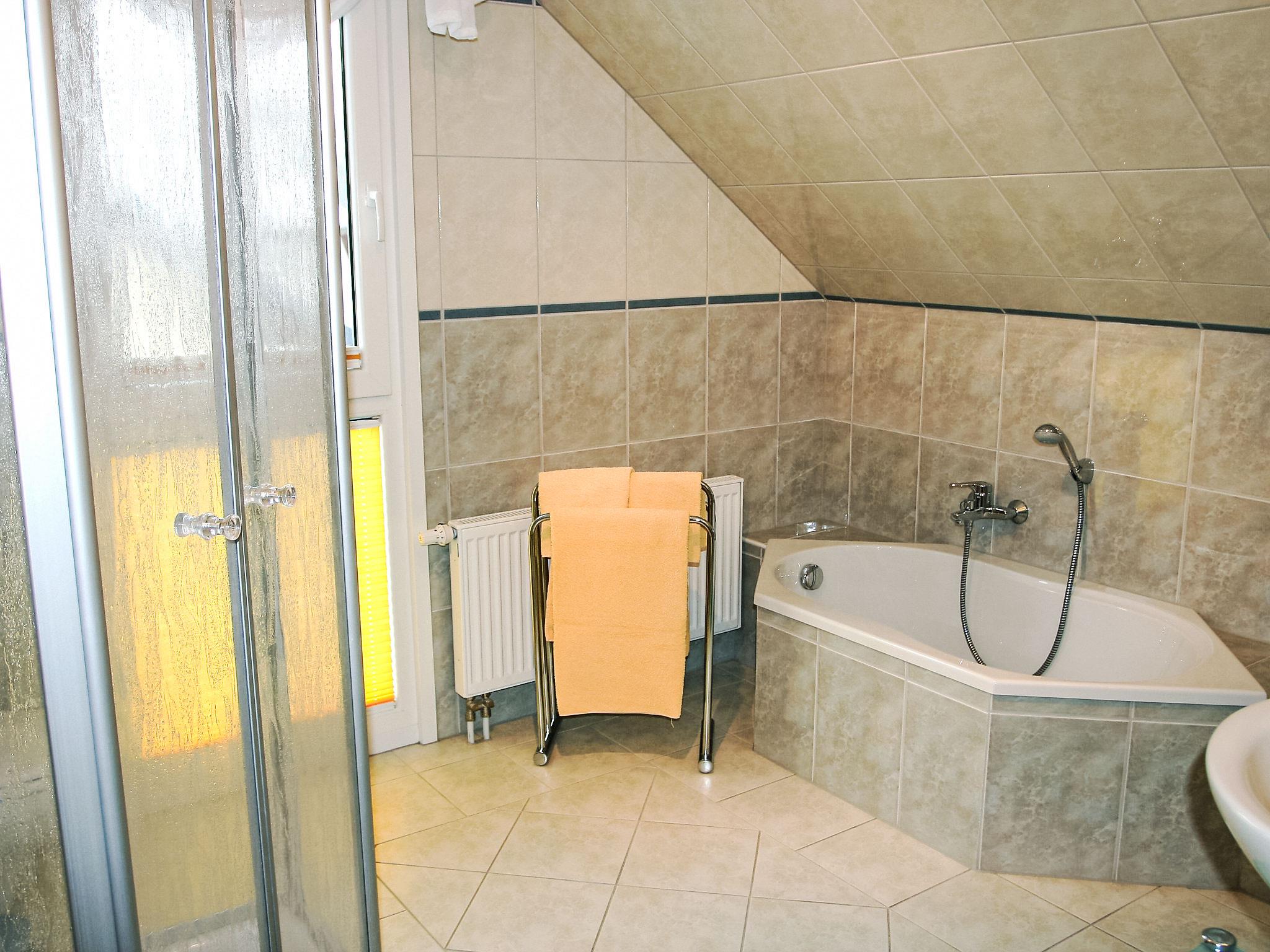 2-room apartment 56 m2, on the top floor. Comfortable and tasteful furnishings: living room with satellite TV (flat screen). Exit to the balcony. 1 room with sloping ceilings with 1 double bed (180 cm, length 200 cm). Kitchenette (oven, dishwasher, 4 ceramic glass hob hotplates, toaster, kettle, microwave, electric coffee machine). Bath/shower/WC. Small balcony, patio. Facilities: Internet (WiFi, free). Please note: non-smokers only. Smoke alarm.