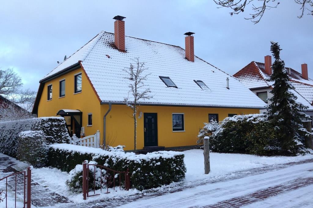 In dieser mit 5 Sternen klassifizierten, stilvollen und komfortabel eingerichteten Doppelhaushälfte mit 110 m² Wohnfläche werden Sie zu jeder Jahreszeit schöne Tage verbringen. Der Ostseestrand, das Zentrum und der Darßer Wald sind in 10 bis15 Gehminuten bequem zu erreichen. Fahrradverleih ist gleich gegenüber. Das große Wohnzimmer von 40 m² sorgt für ausreichend viel Platz und verfügt über eine Ess-, Wohn- und Kaminecke. Die 3 Schlafzimmer, 2 Badezimmer und die separate voll ausgestattete moderne Küche bieten Raum für 6 Personen. Mit der Sauna werden auch die Wintermonate zur Urlaubszeit. Der eingezäunte 300m² große Garten mit Terrasse ist in Süd-West-Richtung ausgerichtet. Direkt am Ferienhaus sind 2 PKW-Stellplätze und Fahrradabste