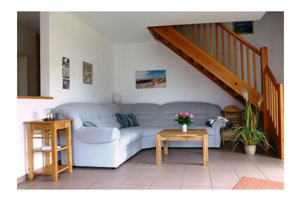 The "Ostseerose" holiday home is located in a small, well-maintained holiday complex in Prerow, just 1.3 km from the beach. The house is ideal for families of up to four people. The house features a well-equipped kitchen with a dining area, a living room with a flat-screen TV and digital satellite connection, two bedrooms with a double bed and two single beds, and a bathroom with a shower and toilet. There is also a terrace and a parking space for your car. The house is non-smoking and pets are not allowed. Bed linen and towels can be booked separately. This is a great place to relax, as there is no Wi-Fi. The holiday homes DHH 9 and DHH 7 in the same complex are similarly equipped and also accommodate up to four people. This holiday home is a good choice for a holiday with family or friends in Prerow. The house is spacious, comfortable, and situated in a beautiful location.