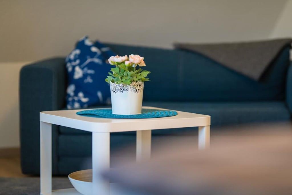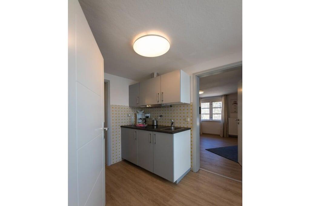 , Stue(Fjernsyn), Køkken(tekøkken, spisebord, kogeplade, elkedel, brødrister, kaffemaskine, køleskab), soveværelse(, dobbeltseng), badeværelse(, toilet, bruser, føntørrer), Internetadgang, varme, parkering