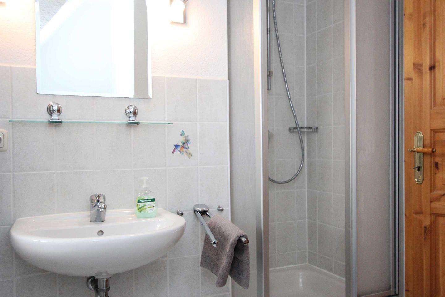 Über eine Treppe gelangen Sie in das Obergeschoss, welches über zwei Schlafzimmer verfügt. Das erste Schlafzimmer ist mit zwei Einzelbetten ausgestattet, das zweite mit einem Doppelstockbett. Ebenfalls im Obergeschoss befindet sich das Tageslicht-Duschbad und ein Balkon mit Südausrichtung.