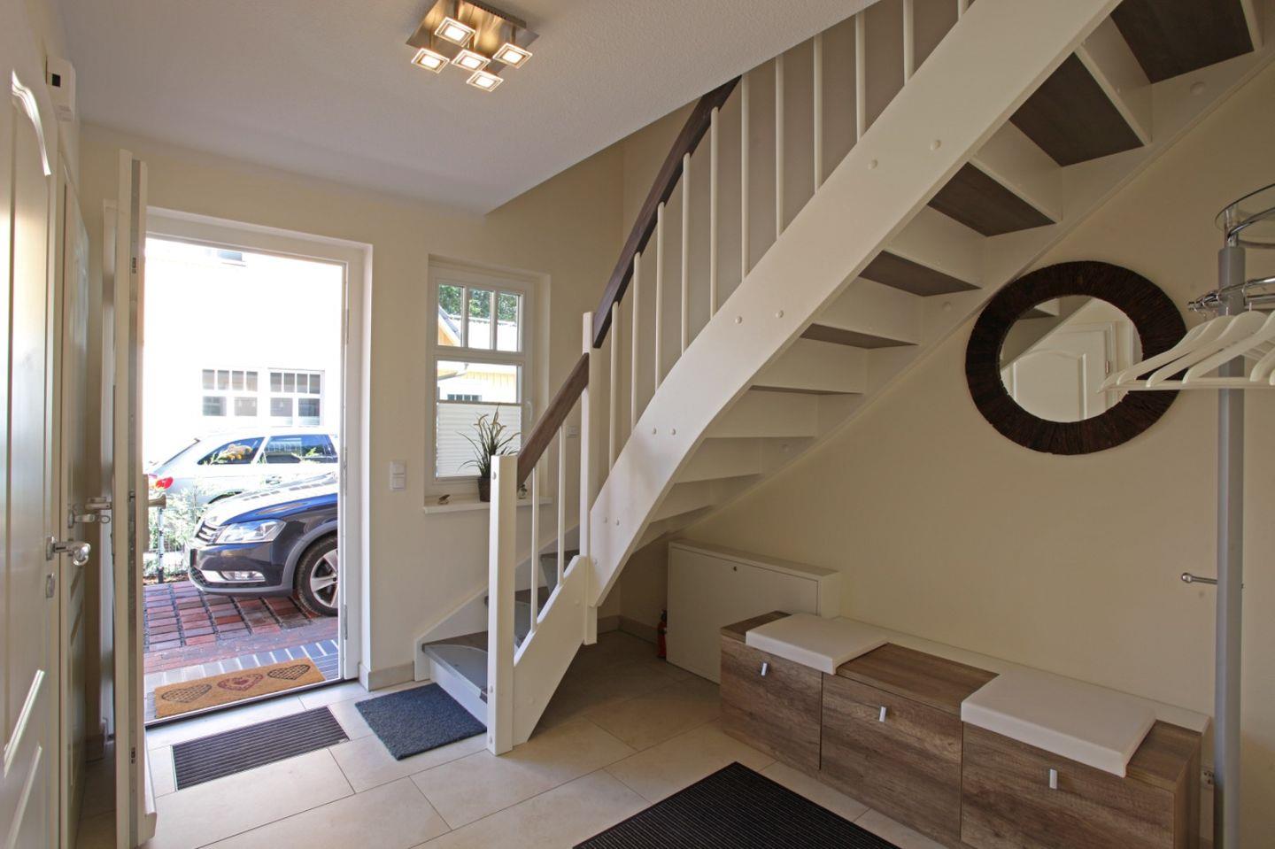 Die überdachte Terrasse und der Balkon sind nach Süd-Westen ausgerichtet und mit Sonnenliegen, Sonnenschirm und Gartenmöbeln ausgestattet. Das Zentrum von Prerow mit seinen Einkaufsmöglichkeiten, der Badestrand und der Darßwald sind nur wenige Gehminuten entfernt. Verbringen Sie hier einen erholsamen, unvergesslichen Urlaub und nehmen Abstand vom stressigen Alltag.