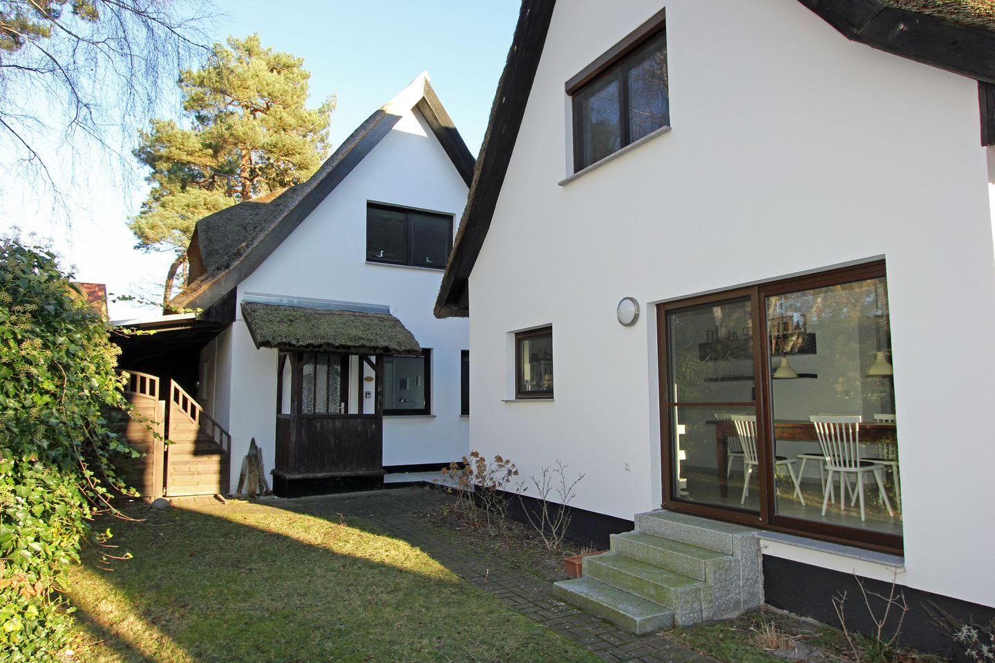 Dieses wunderschöne, ortstypisch rohrgedeckte Ferienhaus befindet sich in idyllischer Lage unweit vom Darßer Urwald. Zusammen mit einem weiteren Ferienhaus bietet es auf 700 m² Grundstück genügend Platz zum Entspannen und Erholen.