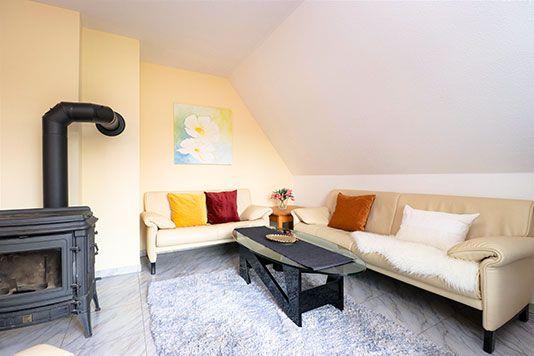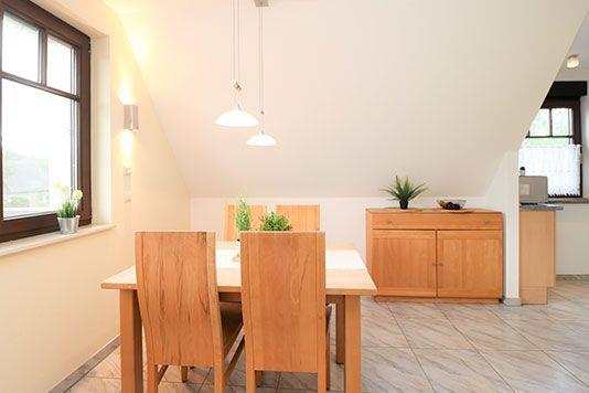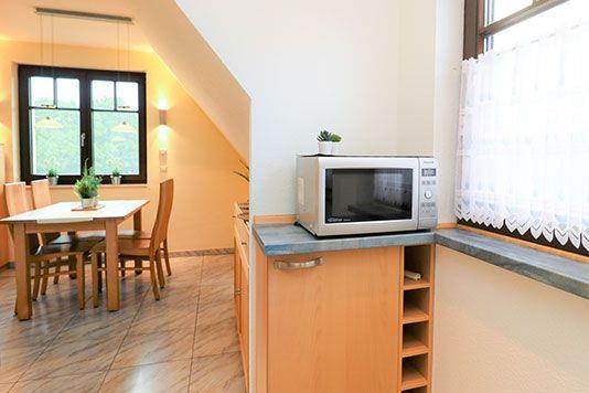 Dieses helle und freundliche Maisonette-Appartement im Obergeschoss des Hauses mit einem Balkon bietet auf 55 m² Platz für bis zu 5 Personen. Es ist ideal für kleine Familien oder Gruppen, die eine gemütliche und gut ausgestattete Unterkunft suchen. Im Wohnzimmer finden Sie eine integrierte Küchenzeile, die es Ihnen ermöglicht, Mahlzeiten zuzubereiten und dabei gleichzeitig das gemütliche Ambiente zu genießen. Der Kaminofen sorgt an kühleren Tagen für wohlige Wärme und trägt so zum Wohlfühlfaktor bei. Für erholsame Nächte stehen Ihnen zwei Schlafzimmer zur Verfügung: Ein Schlafzimmer befindet sich im Erdgeschoss und ist mit einem Doppelbett ausgestattet. Das zweite Schlafzimmer befindet sich im 1. Obergeschoss und bietet 3 Einzelbetten, die ideal für Kinder oder Freunde sind. Das Badezimmer ist mit einer Badewanne, Dusche und einem WC ausgestattet, sodass Sie nach einem erlebnisreichen Tag entspannen können. Ihr Haustier ist in diesem Appartement herzlich willkommen. Das Rauchen im Appartement ist jedoch nicht gestattet. Leider steht für dieses Appartement kein WLAN zur Verfügung, aber die ruhige Lage und die gemütliche Einrichtung sorgen sicherlich für eine entspannte Auszeit vom digitalen Alltag. Mit seiner einladenden Atmosphäre und der praktischen Ausstattung ist dieses Maisonette-Appartement der ideale Ort, um den Urlaub in vollen Zügen zu genießen.