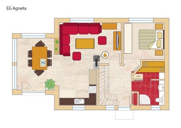 Die Grundrisse beziehen sich auf die Anordnung der Räumlichkeiten, ein Anspruch auf die korrekte Darstellung der Inneneinrichtung besteht nicht
