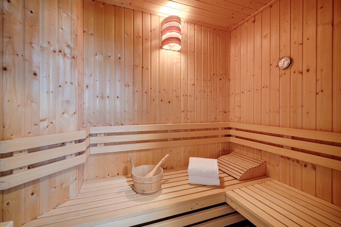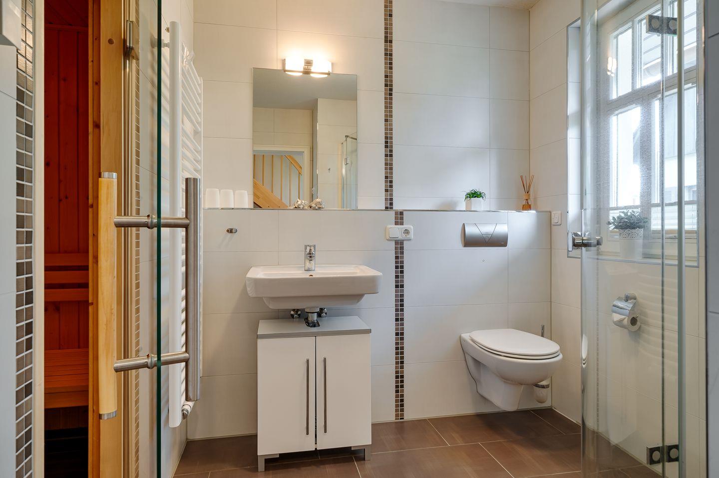 Bad mit ebenerdiger Dusche, Zugang zur Sauna