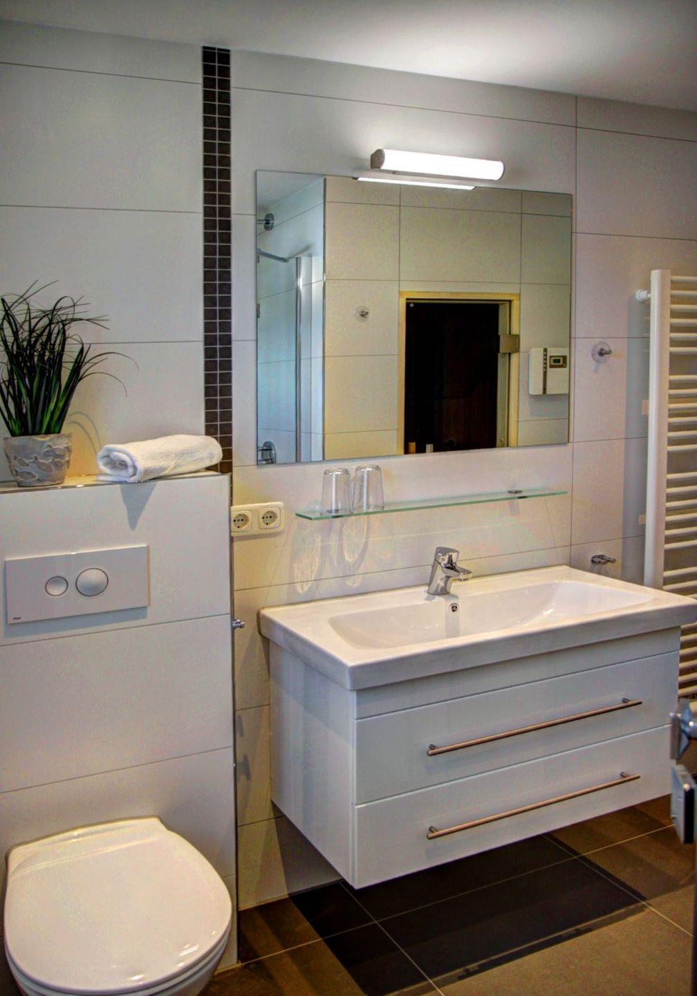 Tageslichtbad mit ebenerdiger Dusche, anliegender Sauna