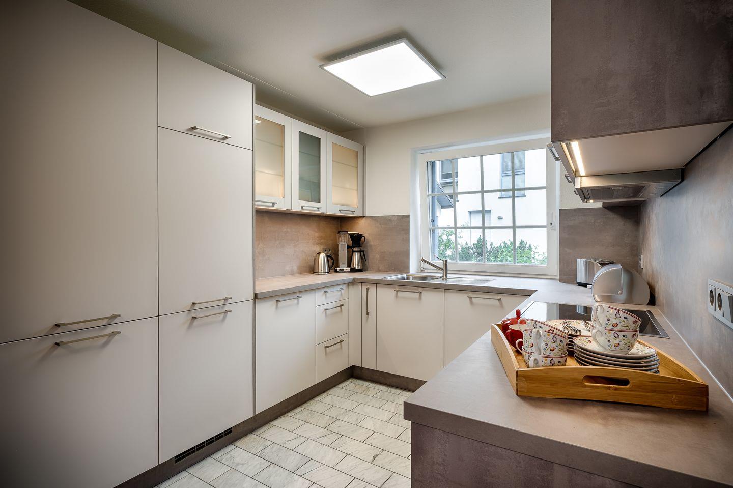 Einbauküche, Moccamaster-Kaffeemaschine, Toaster, Wasserkocher