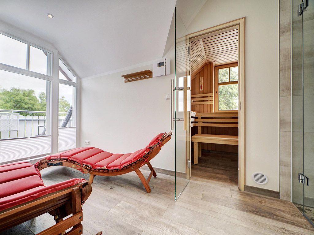 Wellnessbereich mit Sauna und Ruhebereich mit Saunaliegen