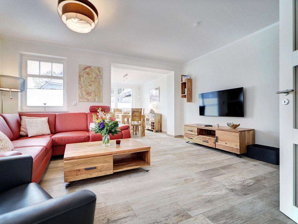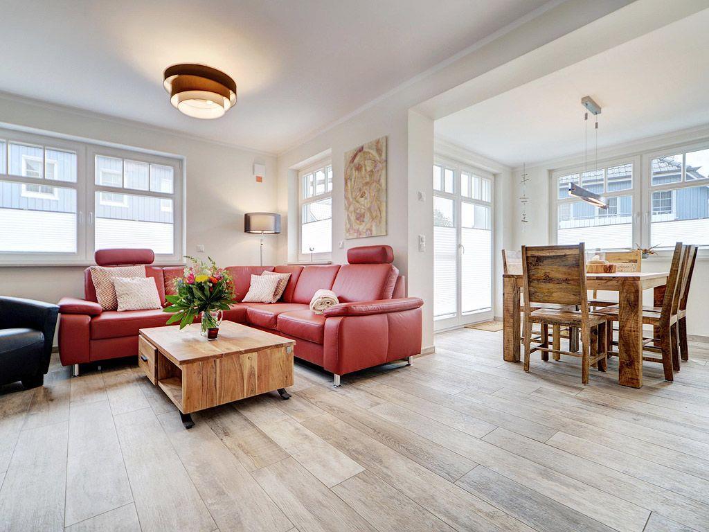 Wohnraum mit Couch-Ecke, Esstisch für 4-6 Personen in der Darßveranda
