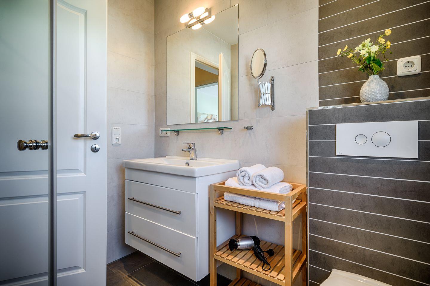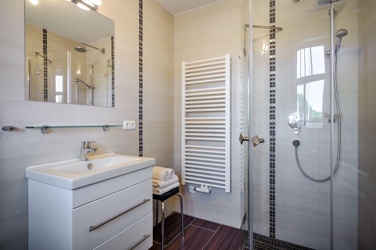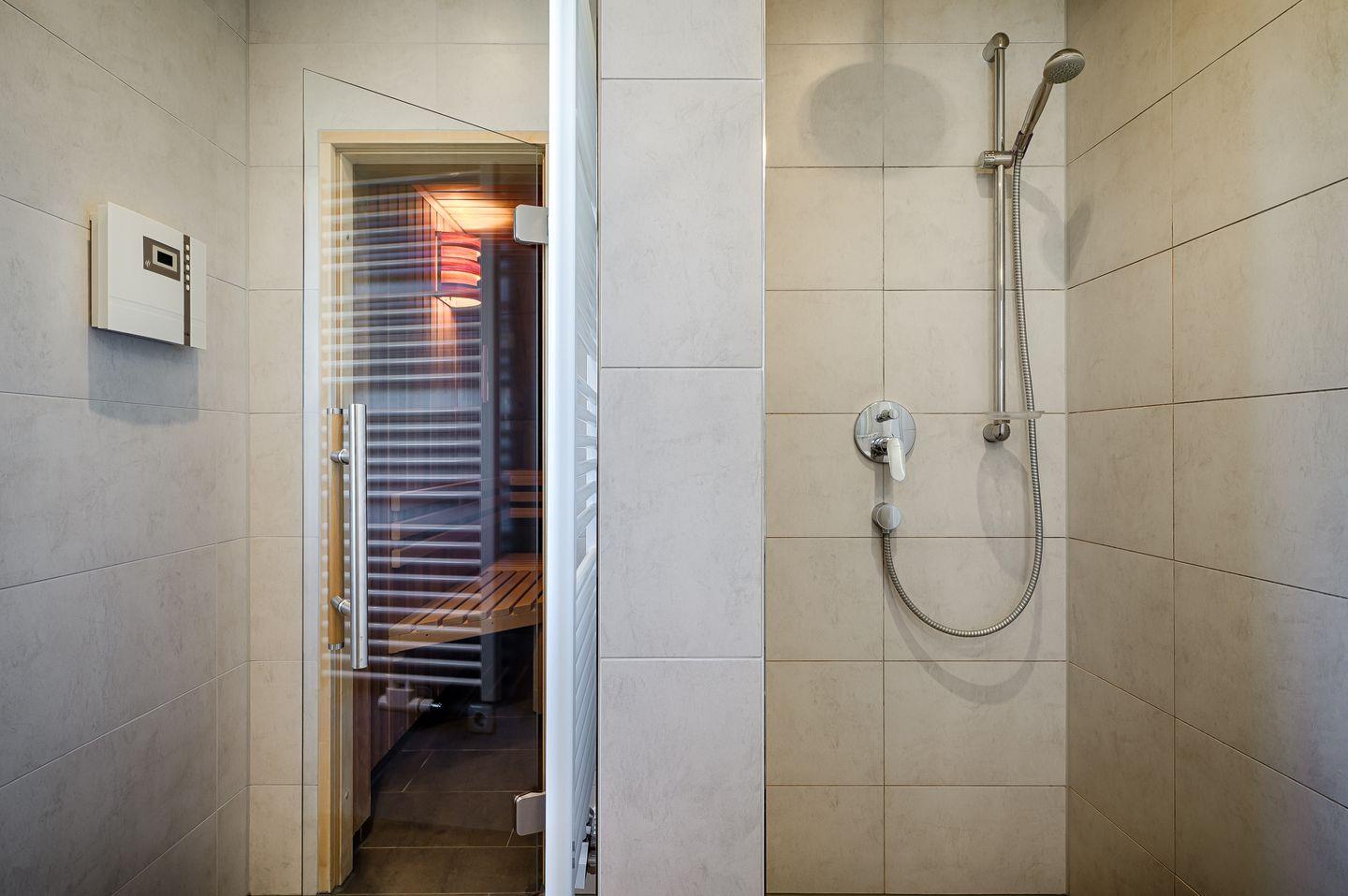 Bad mit ebenerdiger Dusche, anliegende Sauna (ohne Gebühren)