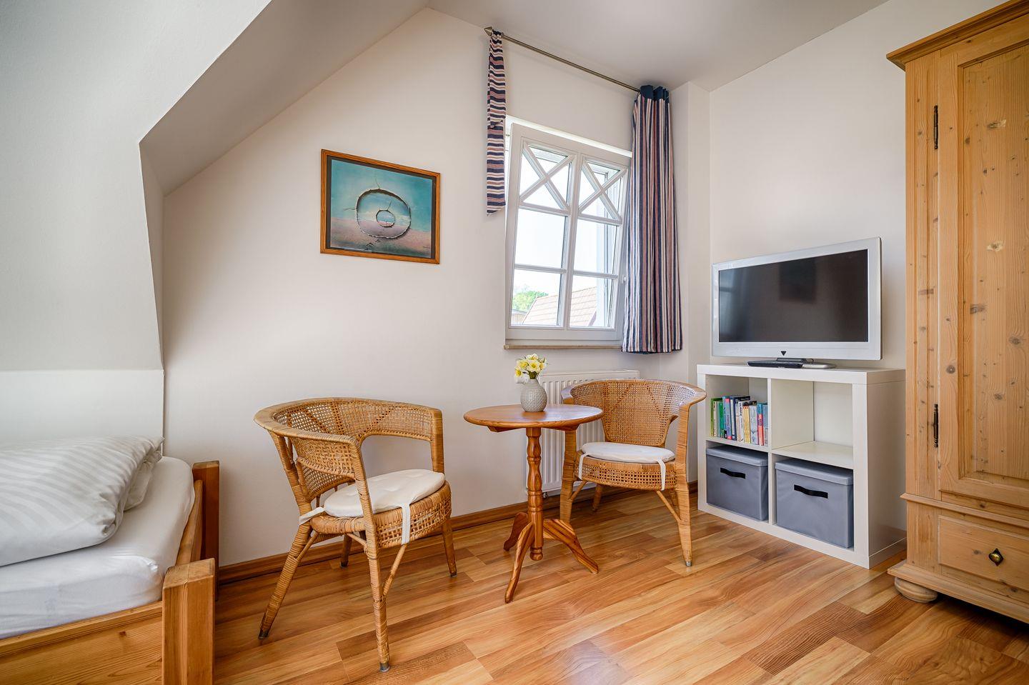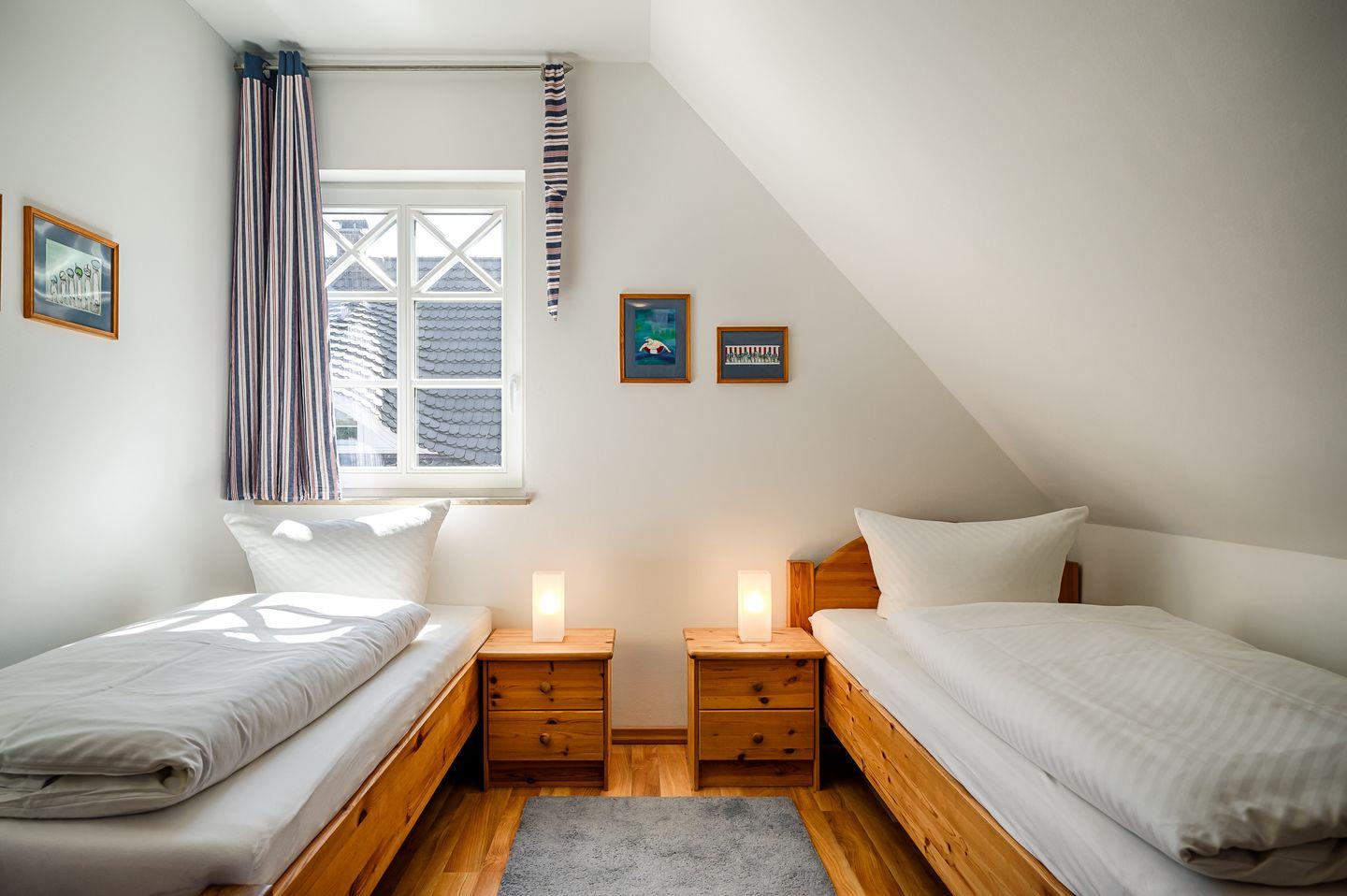 1 Schlafzimmer mit 2 Einzelbetten (0,90x2,00m), verstellbare Lattenoste, LCD-Sat-TV