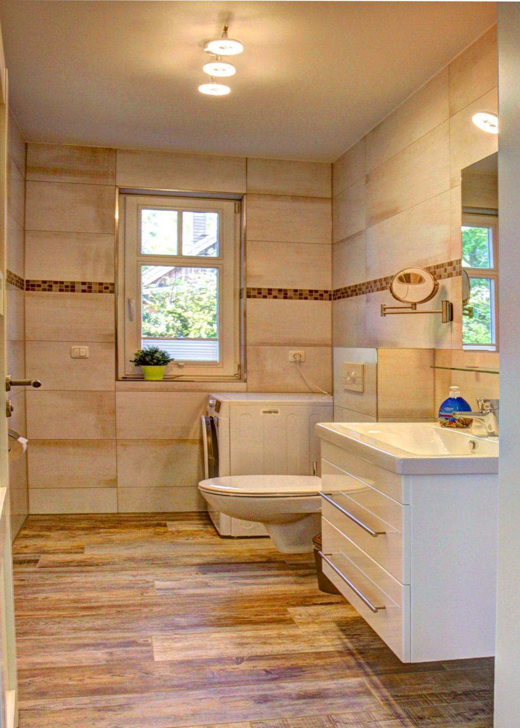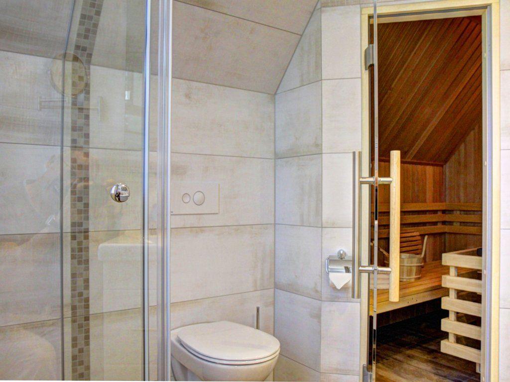 Tageslichtbad mit ebenerdiger Dusche, anliegender Sauna