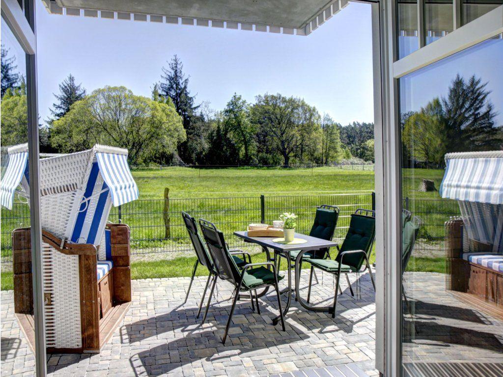 Terrasse (Süden), freier Blick auf eine große Wiese im Süden