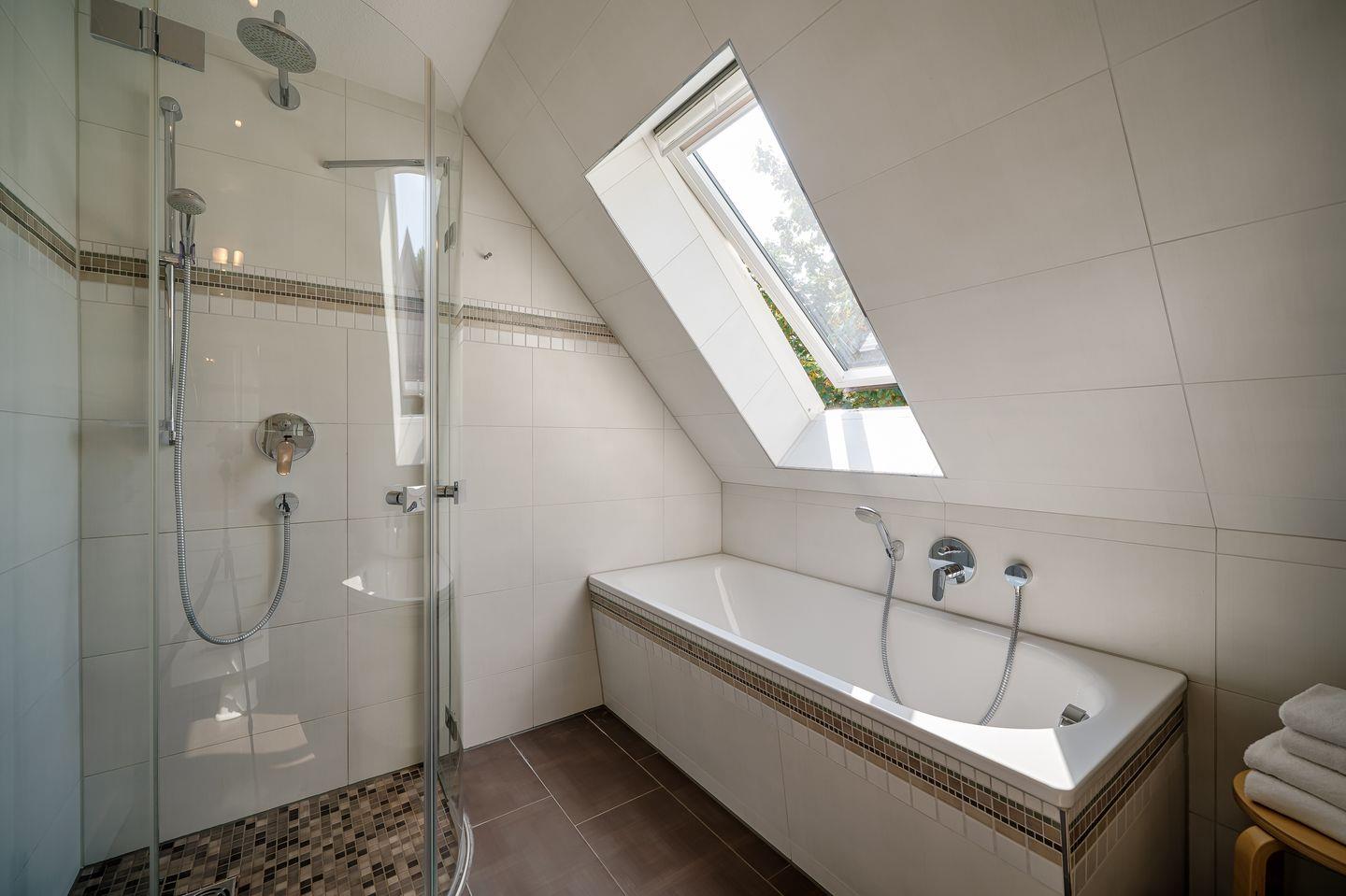 Tageslichtbad mit ebenerdiger Dusche