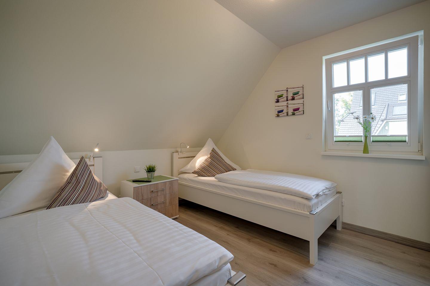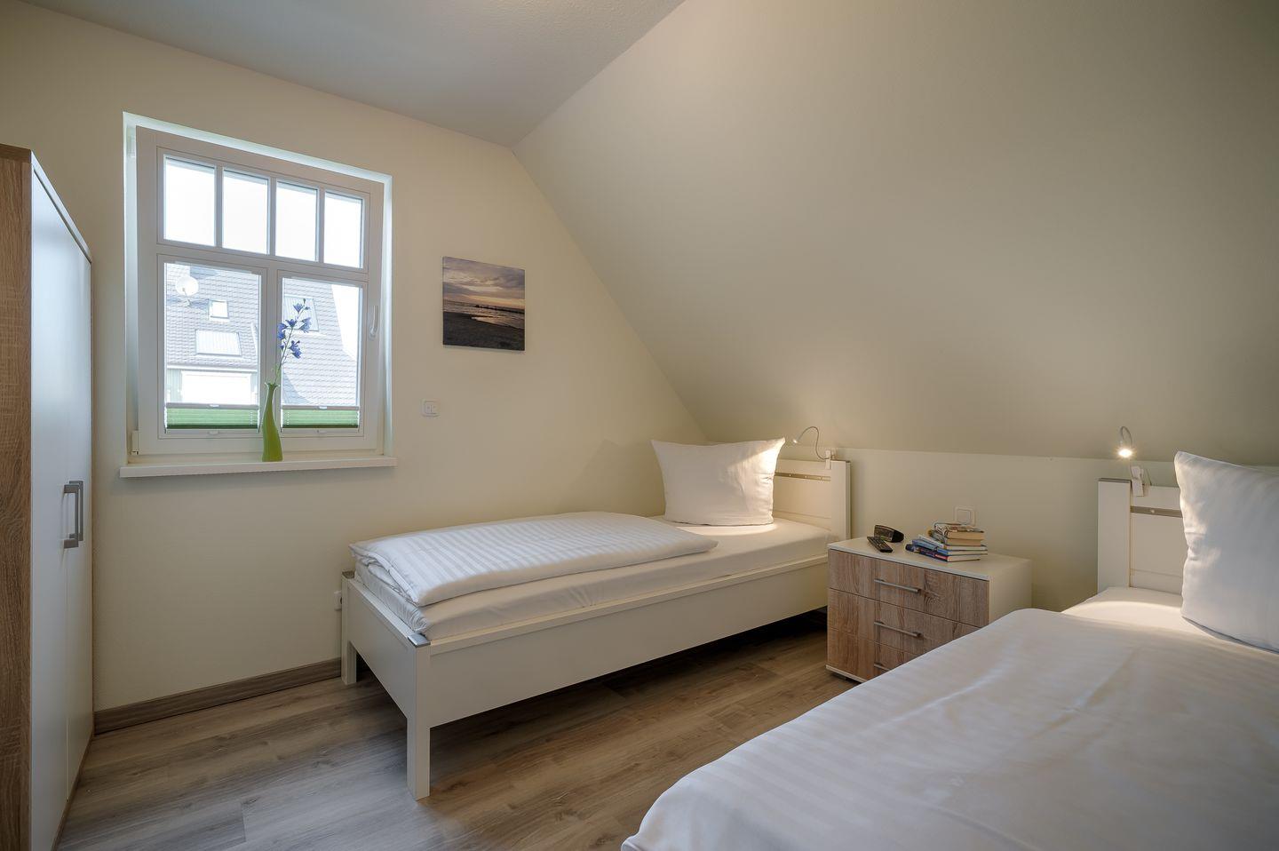 2 Schlafzimmer mit 2 Einzelbetten (0,90x2,00m), verstellbare Lattenroste, TV