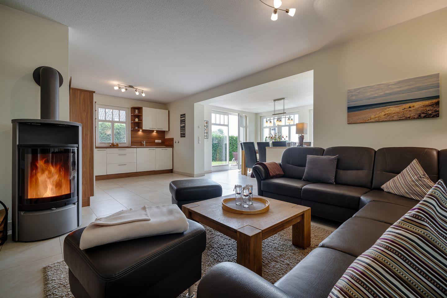 Wohn- Esszimmer mit Ledercouch