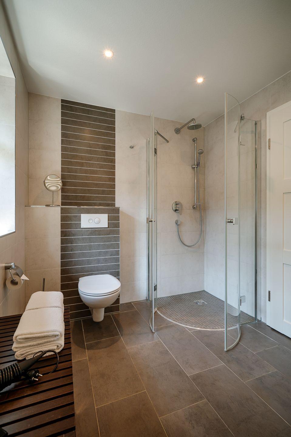 Tageslichtbad mit ebenerdiger Dusche und anliegender Sauna
