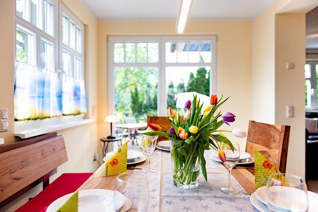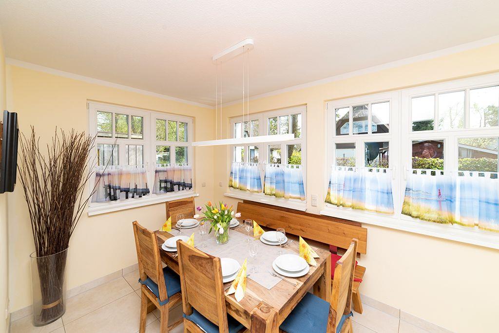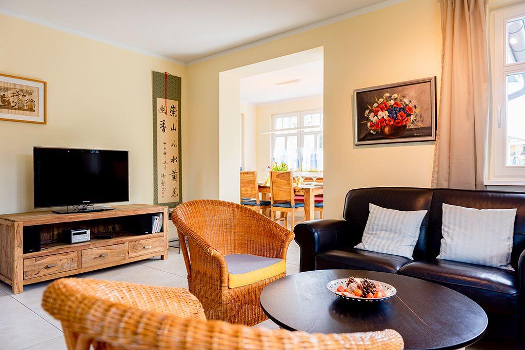 Wohnbereich mit Ledersitzecke, Essbereich mit Esstisch für 6 Personen