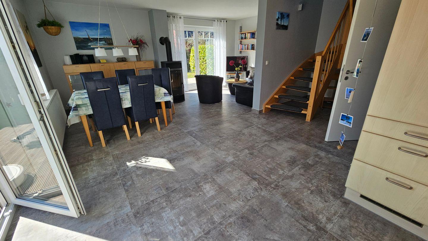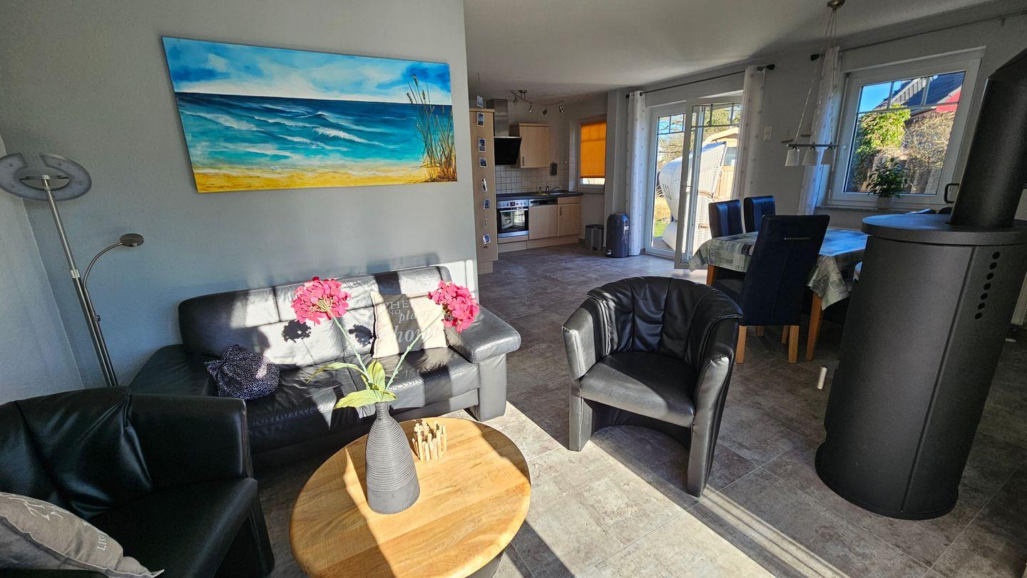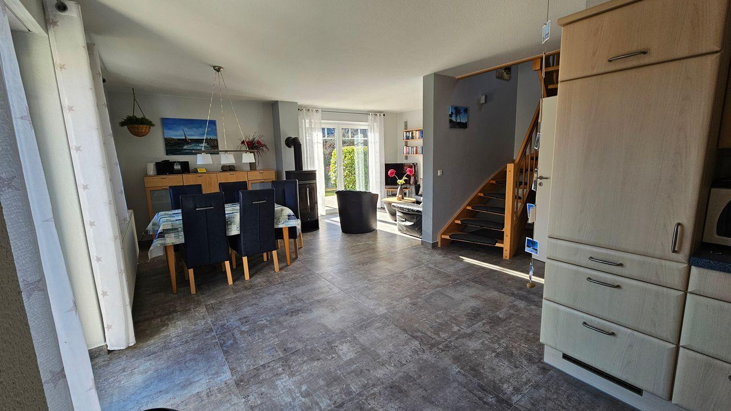 Wohn- und Essbereich mit komplett eingerichteter Einbauküche