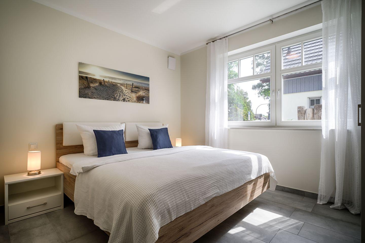1 Schlafzimmer mit Doppelbett (1,80x2,00m), mit verstellbaren Lattenrosten