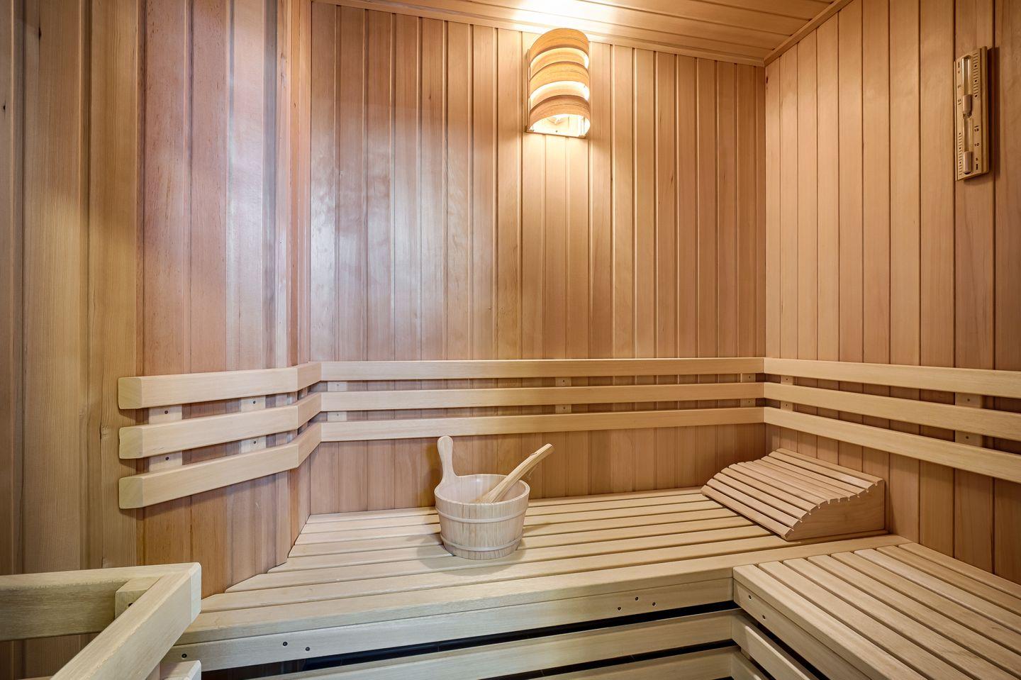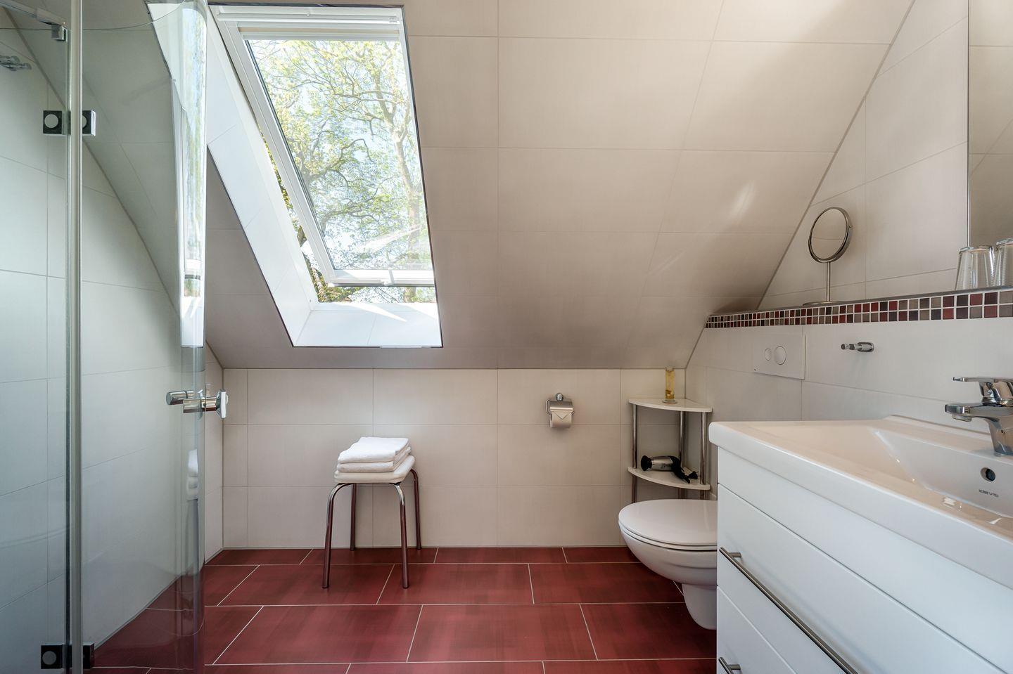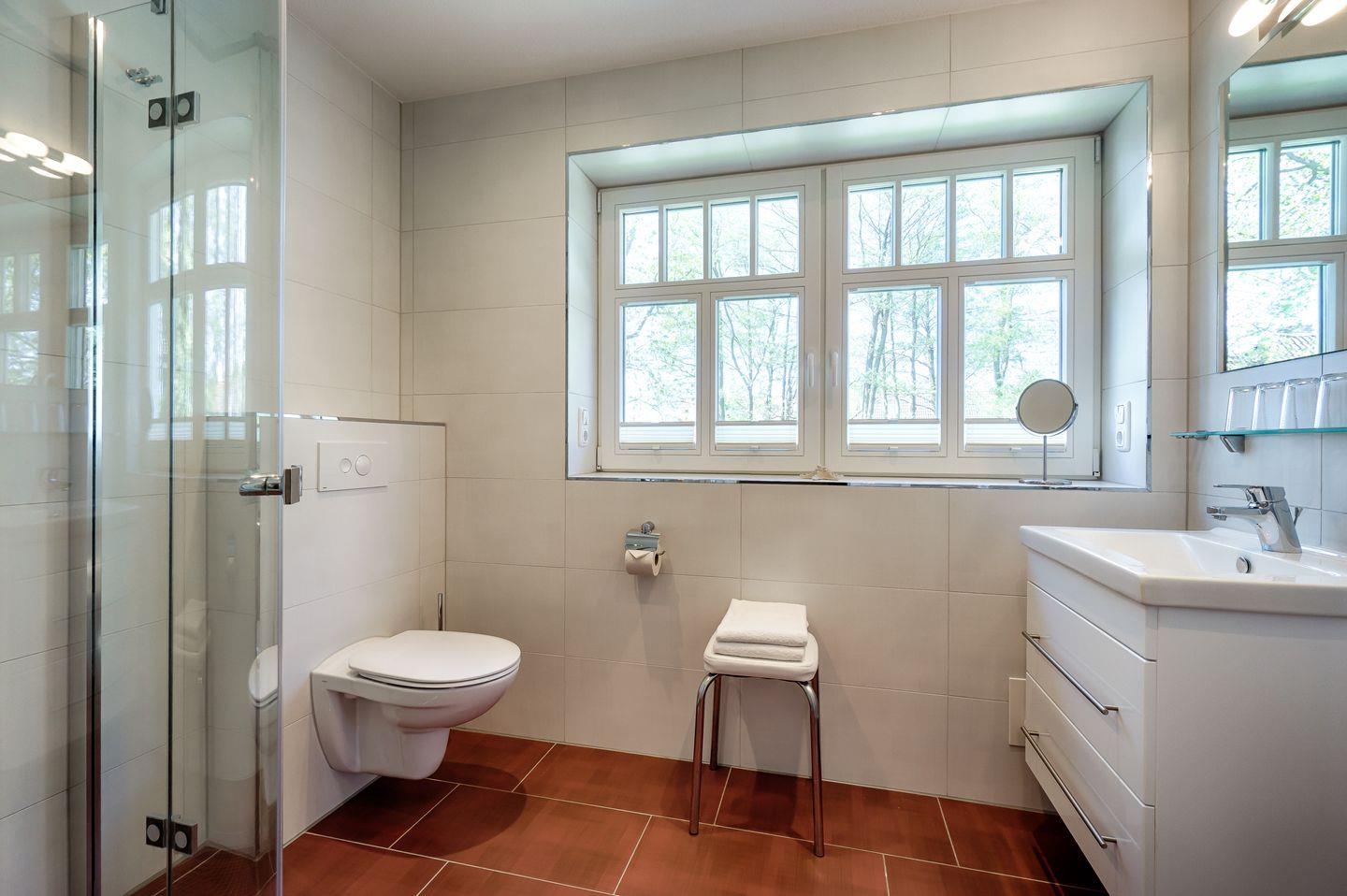 Bad mit ebenerdiger Dusche, anliegender Münzsauna (2,00€ /Std.)