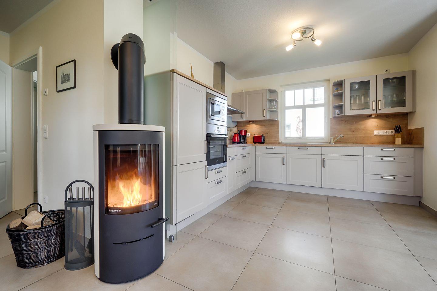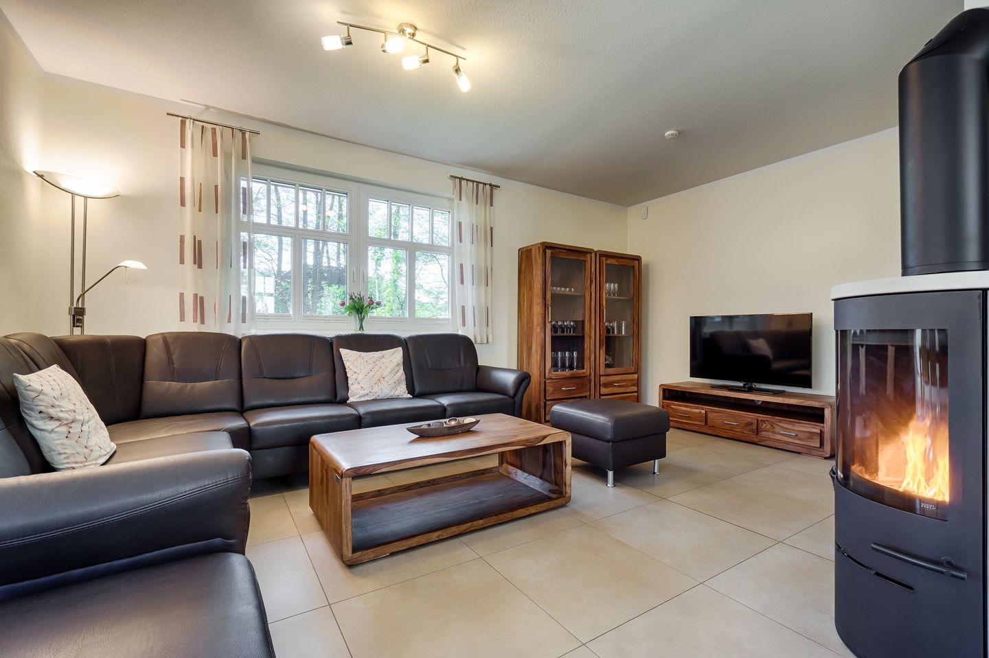 Wohnraum mit Ledercouch, Wintergarten mit Esstisch für 8 Personen