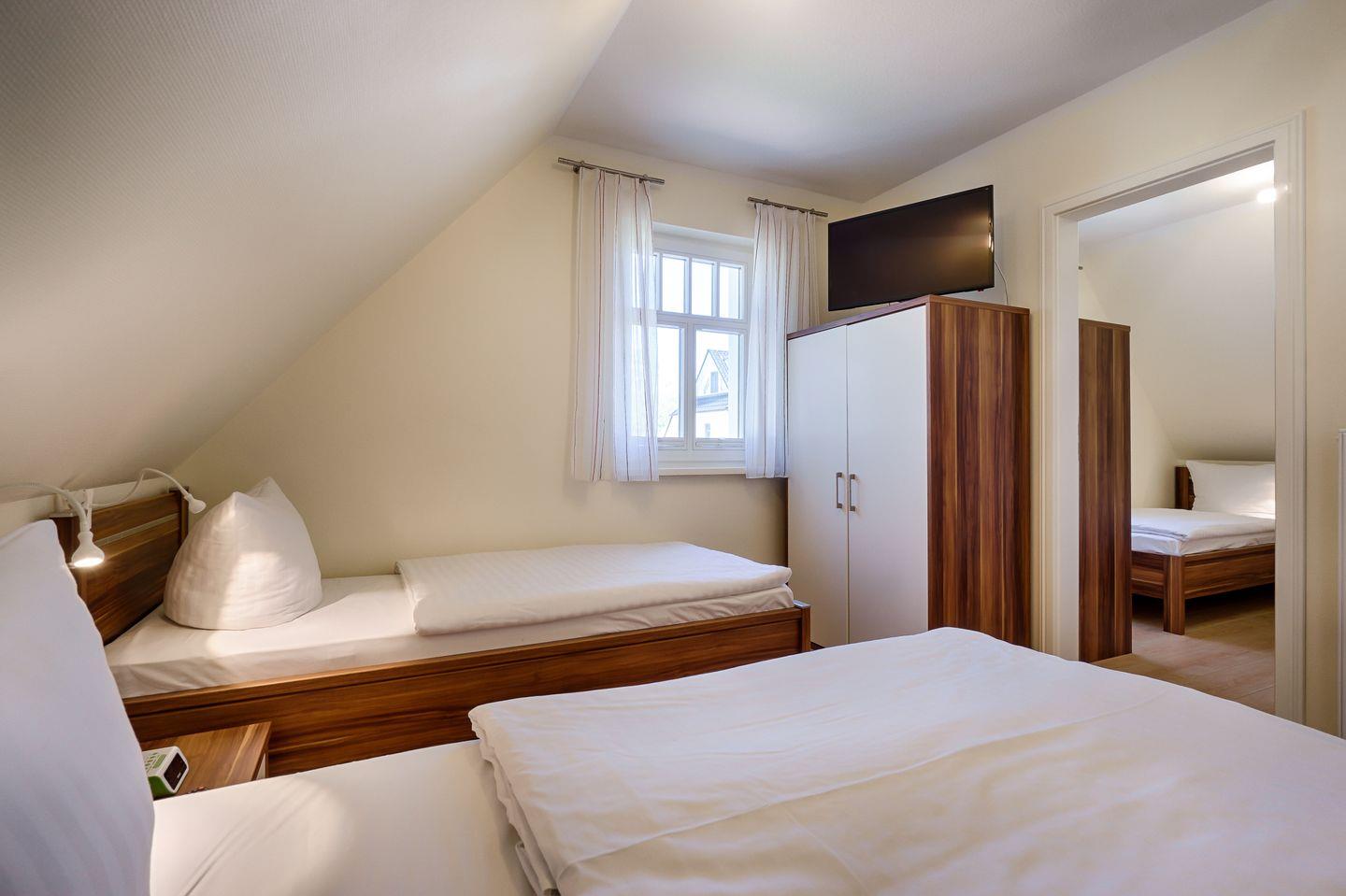 1 Schlafzimmer mit 2 Einzelbetten (0,90x2,00m), verstellbare Lattenroste, TV