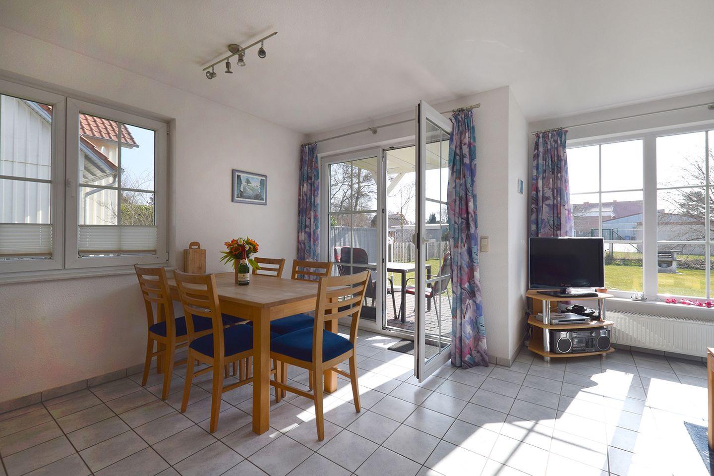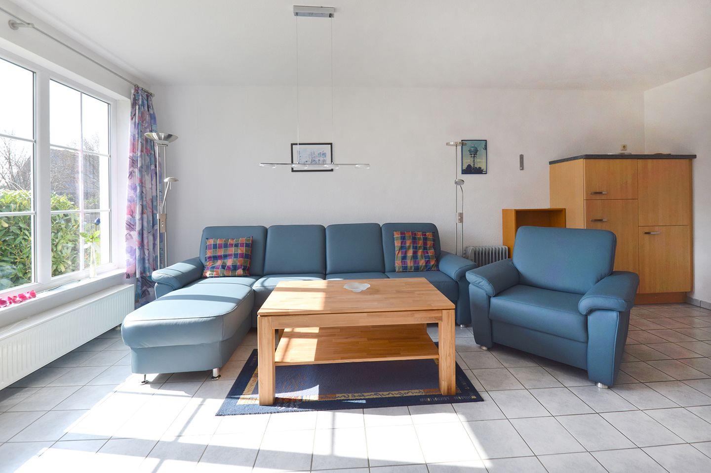 Ferienwohnung bis 4 Personen | ca. 58 m² Wohnfläche | EG Wohnbereich mit Küchenzeile, Bad, 2 Schlafzimmer | Süd-Terrasse | 1 Parkplatz | Wohnbereich Esstisch, Sitzgarnitur, Radio mit CD/DVD-Player, TV SAT/Kabel | Küchenzeile Backofen, Geschirrspüler, Herd, Kaffeemaschine, Kühlschrank mit Gefrierfach, Mikrowelle, Toaster, Wasserkocher | Bad Dusche, WC, Waschmaschine | 2 Schlafzimmer 1 Doppelbett (160 x 200 cm), 2 Einzelbetten (90 x 200 cm) | Bollerwagen, Kinderhochstuhl, Reisebett mit Matratze, WLAN | Gemeinschaftliche Nutzung von Fahrradschuppen, Garten, Grillplatz, Bettwäsche und Handtücher sind nicht inklusive, können aber gemietet werden