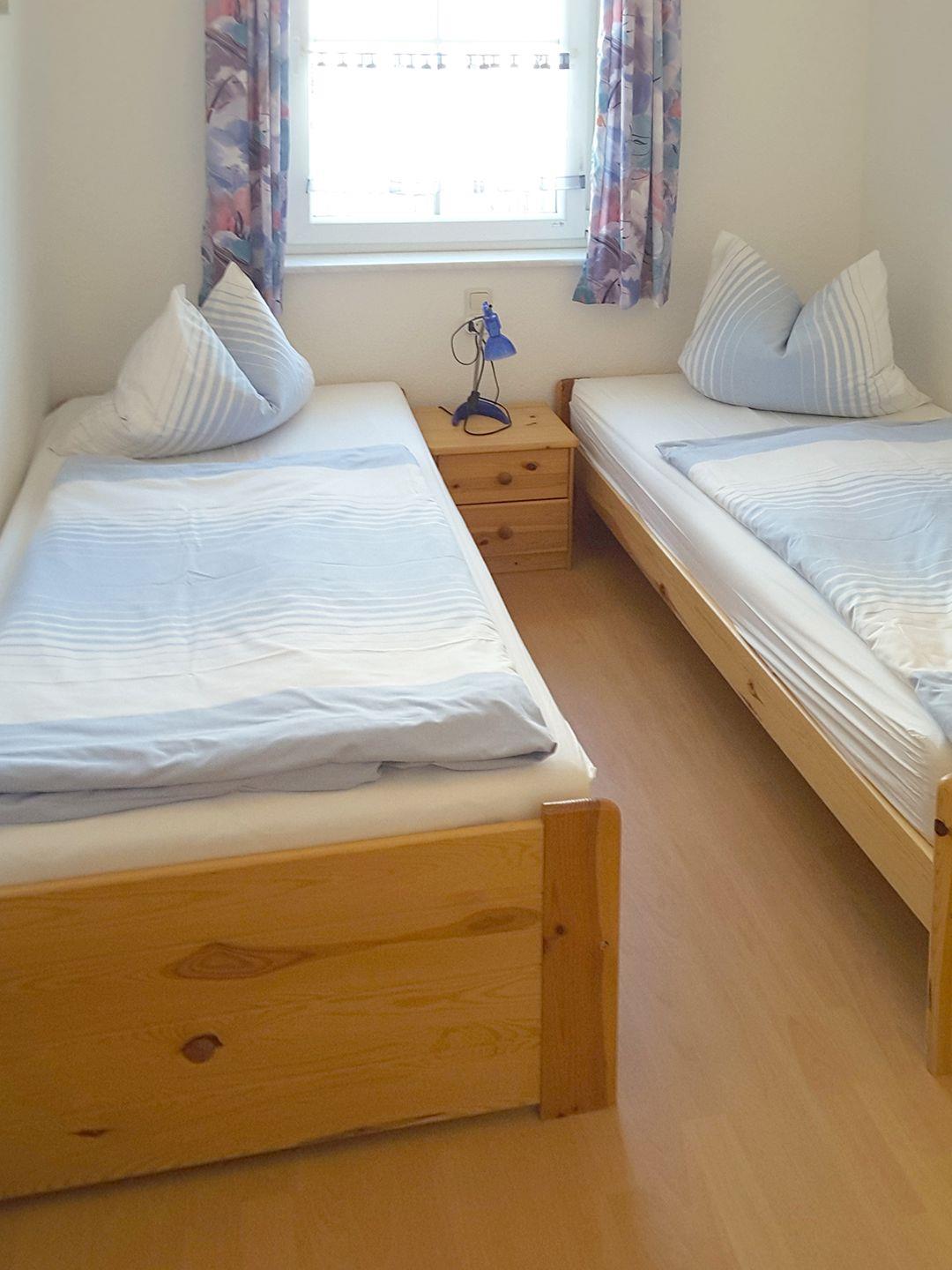 Die Wohnung verfügt über zwei Schlafzimmer: Eines mit einem Doppelbett (160 x 200 cm) und eines mit zwei Einzelbetten (90 x 200 cm), die sich hervorragend für