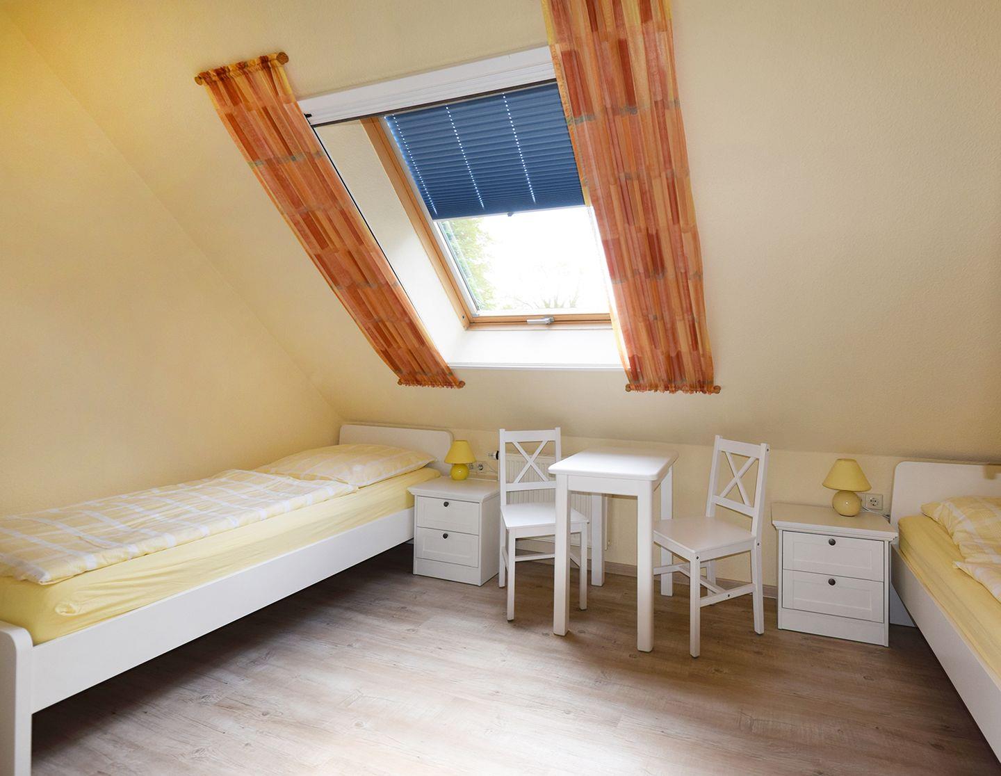 Reihenhaus bis 5 Personen | Haustiere möglich | ca. 60 qm Wohnfläche | EG Wohnzimmer, Küche, Bad, Treppenhaus | DG (Treppe mit Kindersicherung) 2 Schlafzimmer | Terrasse | 1 Parkplatz | Wohnzimmer Schlafsofa, Radio mit CD/DVD-Player, TV SAT/Kabel | Küche mit Esstisch, Backofen, Herd/Cerankochfeld, Geschirrspüler, Kühlschrank mit Gefrierfach, Mikrowelle, Kaffeemaschine, Toaster, Wasserkocher | Bad Dusche, WC | 2 Schlafzimmer 1 Doppelbett (180 x 200 cm), 2 Einzelbetten (90 x 200 cm) | Inkl. Babygitterbett, Kinderhochstuhl | Gemeinschaftliche Nutzung von Fahrradschuppen, Grillecke, Sauna, Spielplatz, Waschmaschine, WLAN | Bettwäsche und 2 Handtücher pro Gast sind ab 7 Übernachtungen inklusive