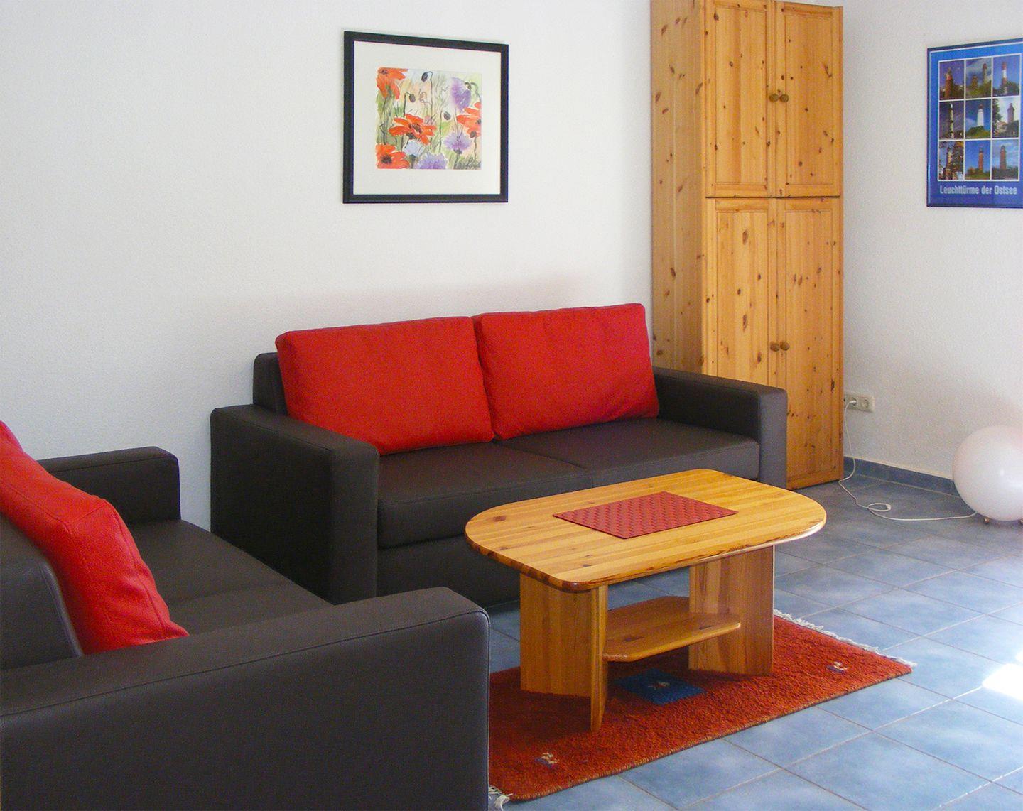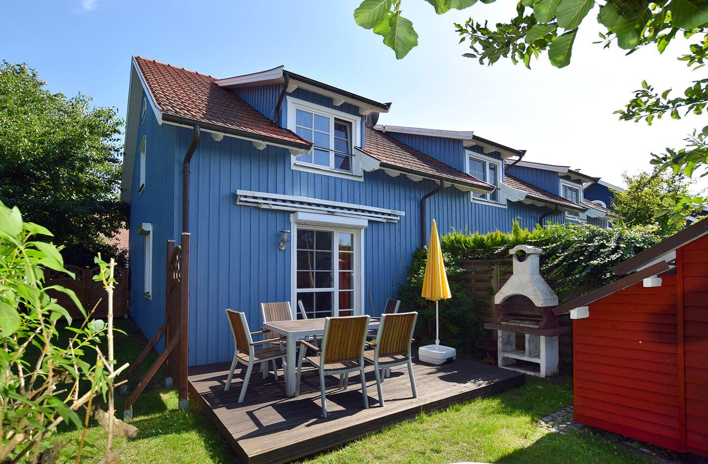 Endreihenhaus bis 4 Personen | Haustiere möglich | ca. 85 m2 Wohnfläche | EG Wohnzimmer, Küche, Bad | DG 2 Schlafzimmer, Bad | West-Terrasse | 2 Parkplätze | Wohnzimmer Schlafsofa, Sitzgarnitur, Radio mit CD-Player, TV SAT/Kabel | Küche Backofen, Esstisch, Geschirrspüler, Herd/Cerankochfeld, Kaffeemaschine, Kühlschrank mit Gefrierfach, Mikrowelle, Toaster, Wasserkocher | 2 Bäder Bad im EG mit bodengleicher Dusche und WC, Bad im DG mit bodengleicher Dusche, Badewanne und WC | 2 Schlafzimmer SZ 1 mit 1 Doppelbett (160 x 200 cm), SZ 2 mit 1 Doppelbett (180 x 200 cm), Esstisch | Inkl. Bettwäsche, Fahrradschuppen, Gartennutzung, Kinderhochstuhl, Reisebett (ohne Bettwäsche), Waschmaschine