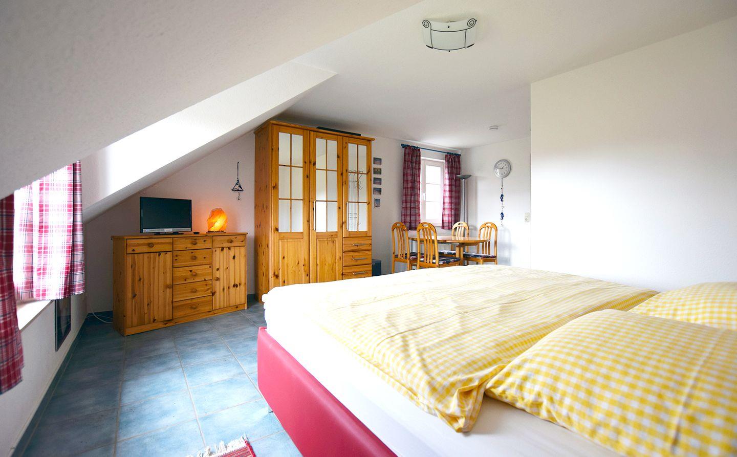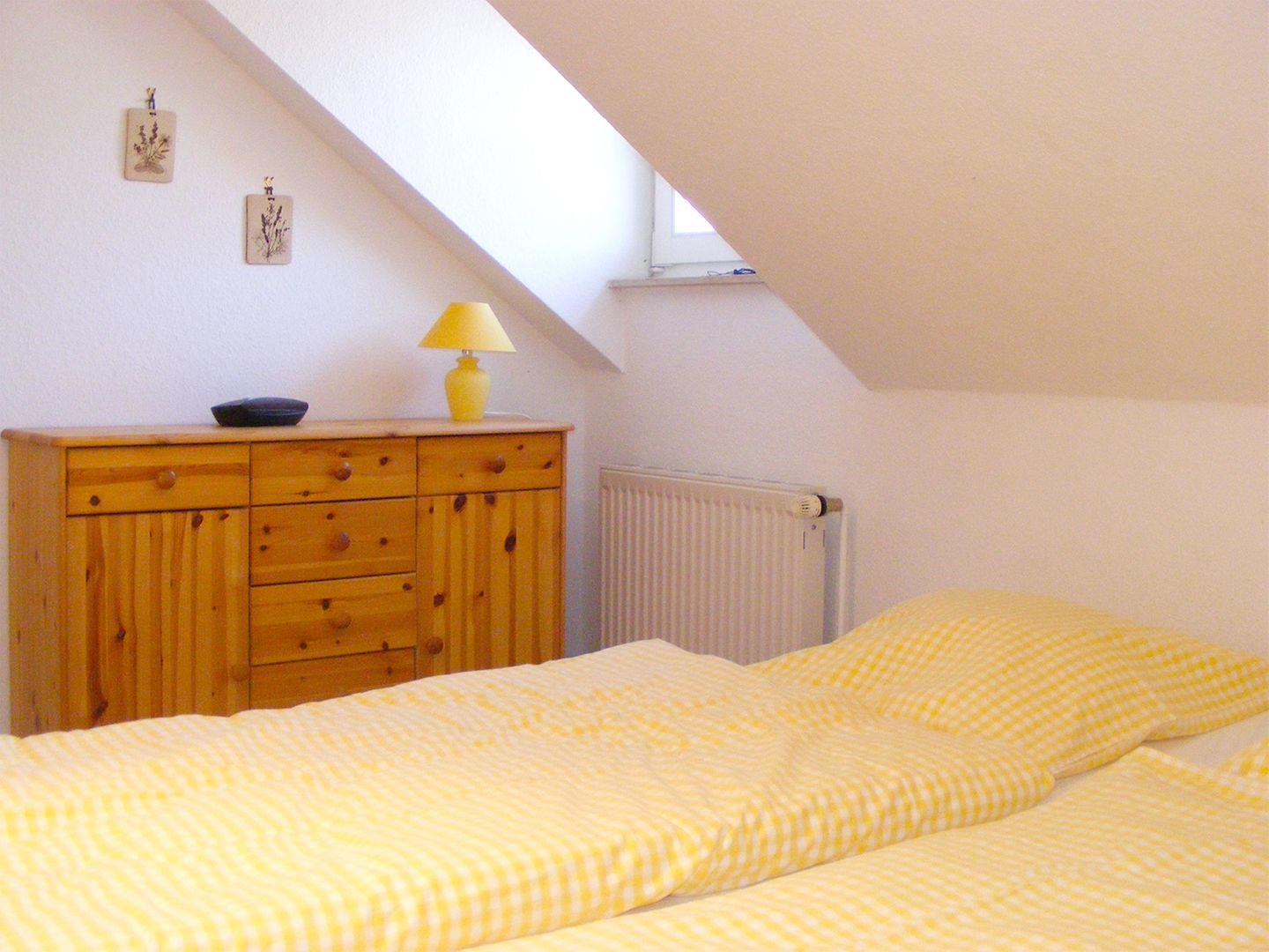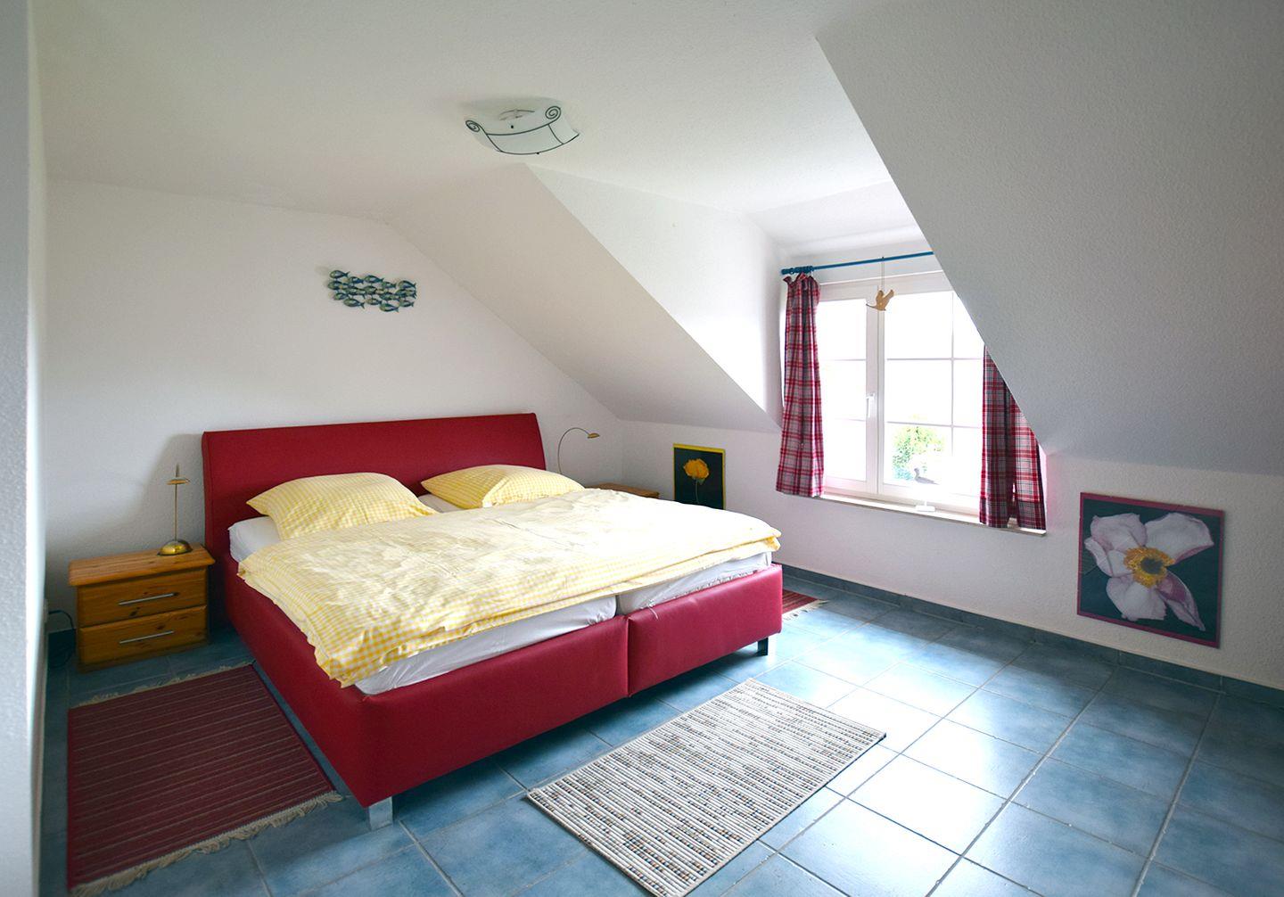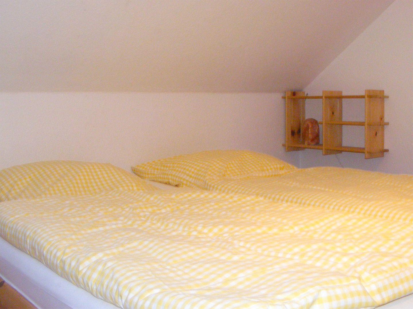 Im Obergeschoss erwarten Sie zwei gemütliche Schlafzimmer: Das erste Schlafzimmer ist mit einem Doppelbett (160 x 200 cm) und das zweite mit einem größeren Doppelbett (180 x 200 cm) eingerichtet. Im Obergeschoss befindet sich zudem ein weiteres Bad, das mit einer bodengleichen Dusche, einer Badewanne und einem WC ausgestattet ist.