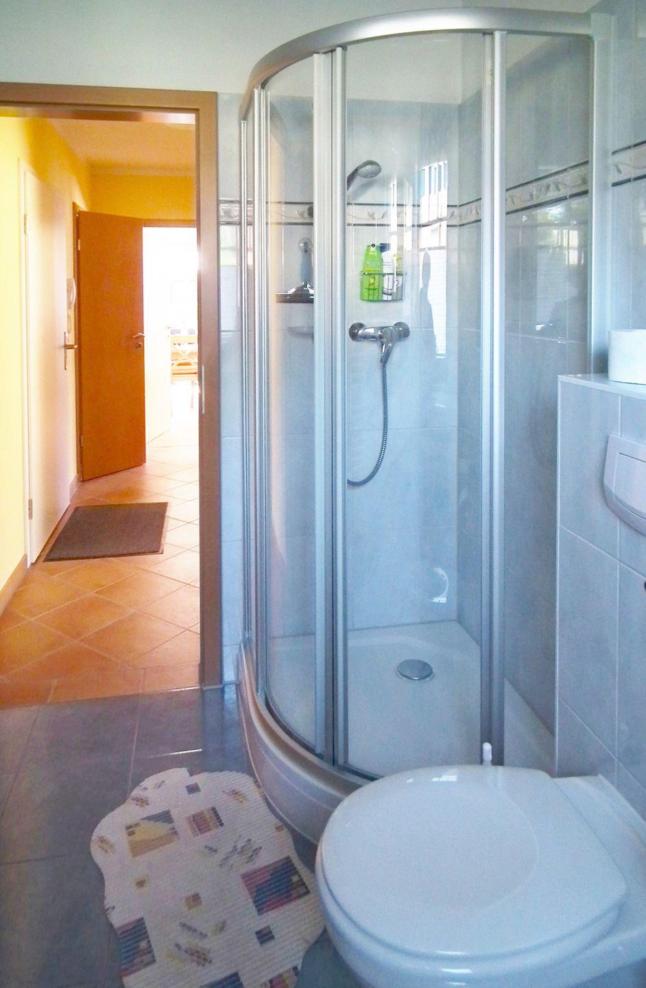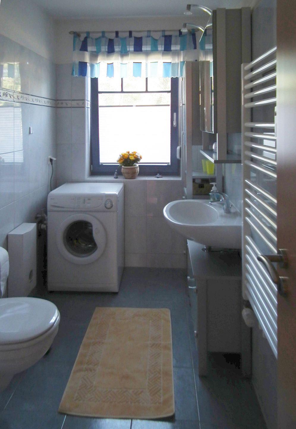 Das Duschbad mit WC und Fenster ist mit einer Waschmaschine ausgestattet, sodass Sie auch während Ihres Aufenthalts Ihre Wäsche waschen können.