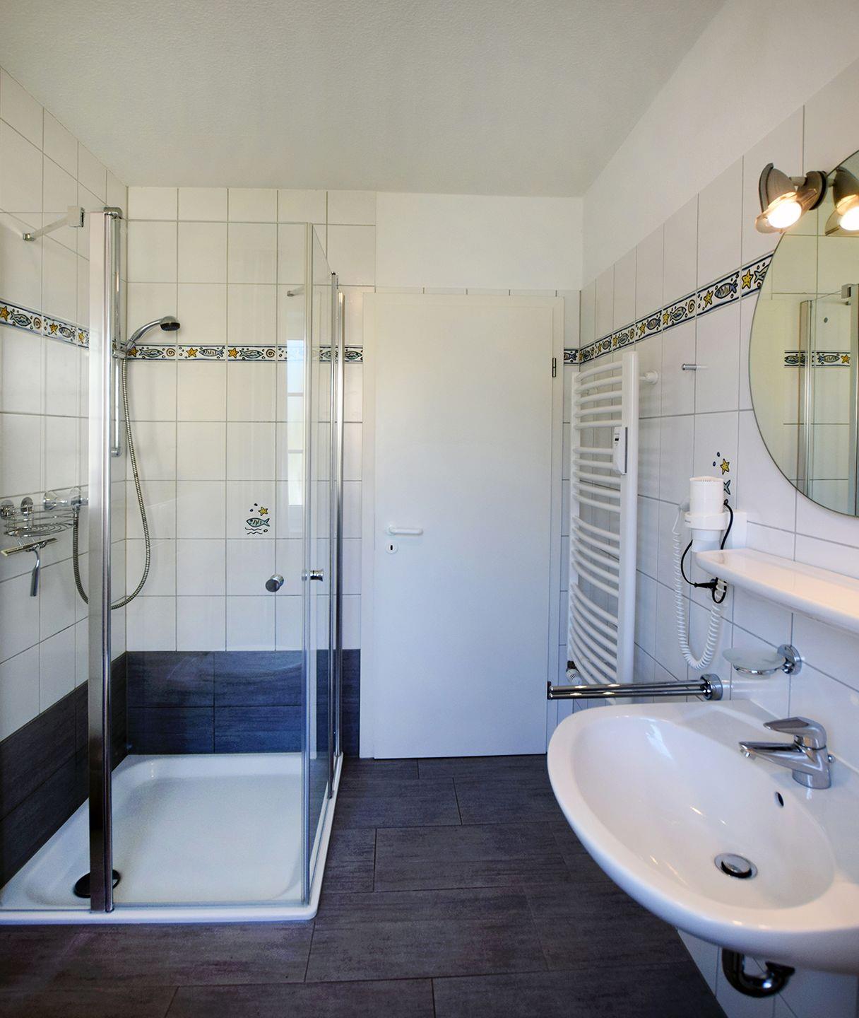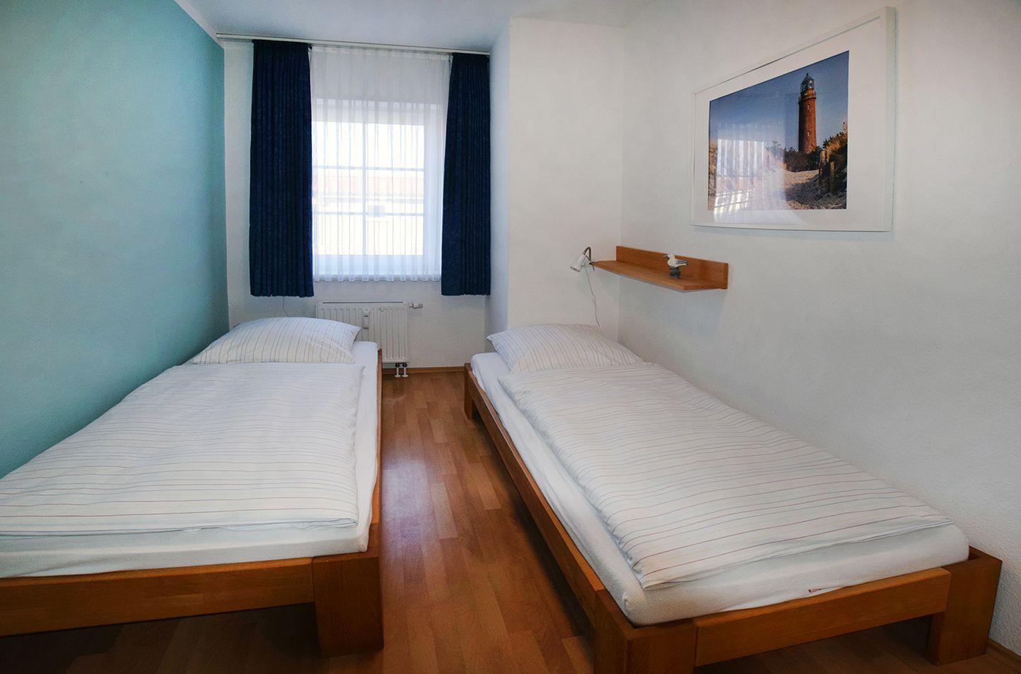 Ferienwohnung bis 4 Personen | ca. 63 m² Wohnfläche | EG Wohnbereich mit Einbauküche, Bad, 2 Schlafzimmer | Süd-Terrasse | 1 Parkplatz | Wohnbereich Esstisch, Sitzgarnitur, Radio mit CD-Player, TV SAT/Kabel | Einbauküche Backofen, Geschirrspüler, Herd, Kaffeemaschine, Kühlschrank (ohne TK), Mikrowelle, Toaster, Wasserkocher | Bad Dusche, Waschmaschine, WC | 2 Schlafzimmer. 1 Doppelbett (180 x 200 cm), 2 Einzelbetten (80 x 200 cm) | Kinderhochstuhl, Reisebett ohne Bettwäsche | Gemeinschaftliche Nutzung von Fahrradschuppen, WLAN